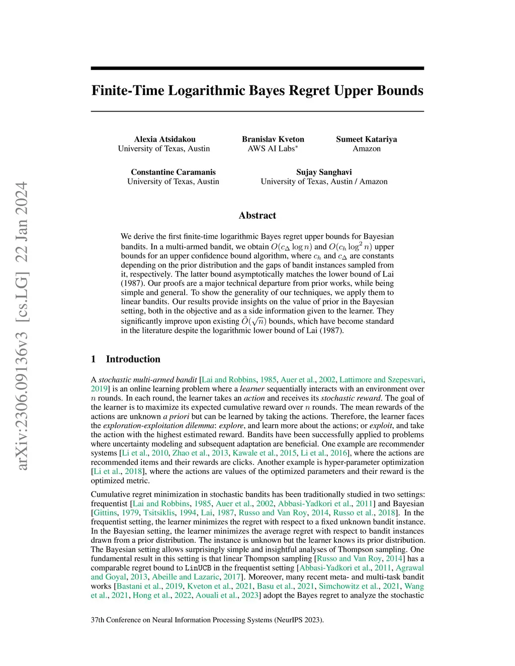 We derive the first finite-time logarithmic regret bounds for Bayesian bandits. For Gaussian bandits, we obtain a bound, where is a prior-dependent constant. This matches the asymptotic lower bound of Lai (1987). Our proofs mark a technical departure from prior works, and are simple and general. To show generality, we apply our technique to linear bandits. Our bounds shed light on the value of the prior in the Bayesian setting, both in the objective and as a side information given to the learner. They significantly improve the bounds, that despite the existing lower bounds, have become standard in the literature.