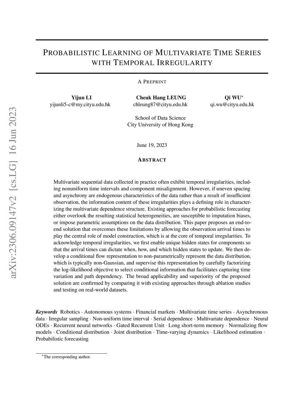Probabilistic Learning of Multivariate Time Series with Temporal Irregularity