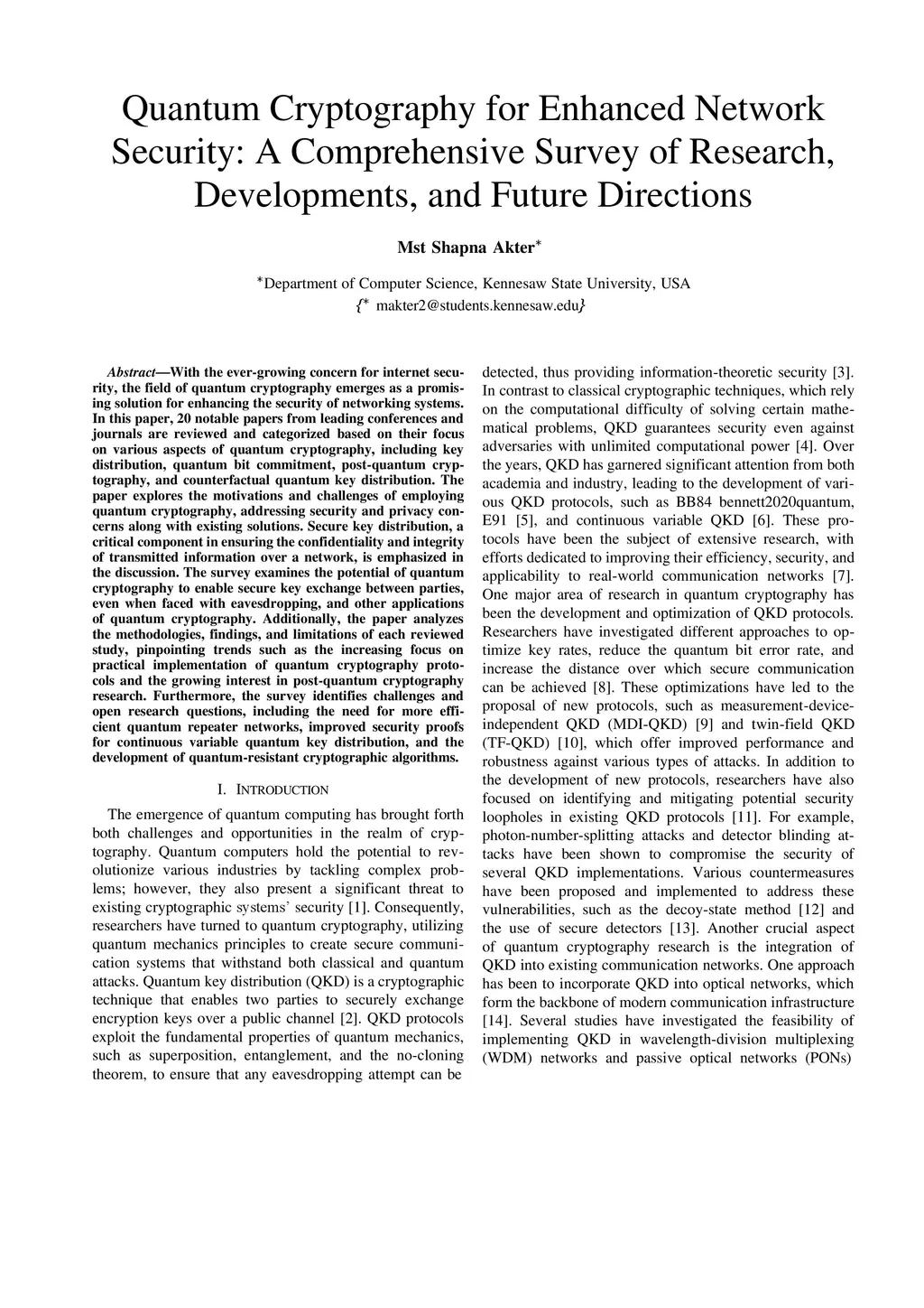 Quantum Cryptography for Enhanced Network Security: A Comprehensive