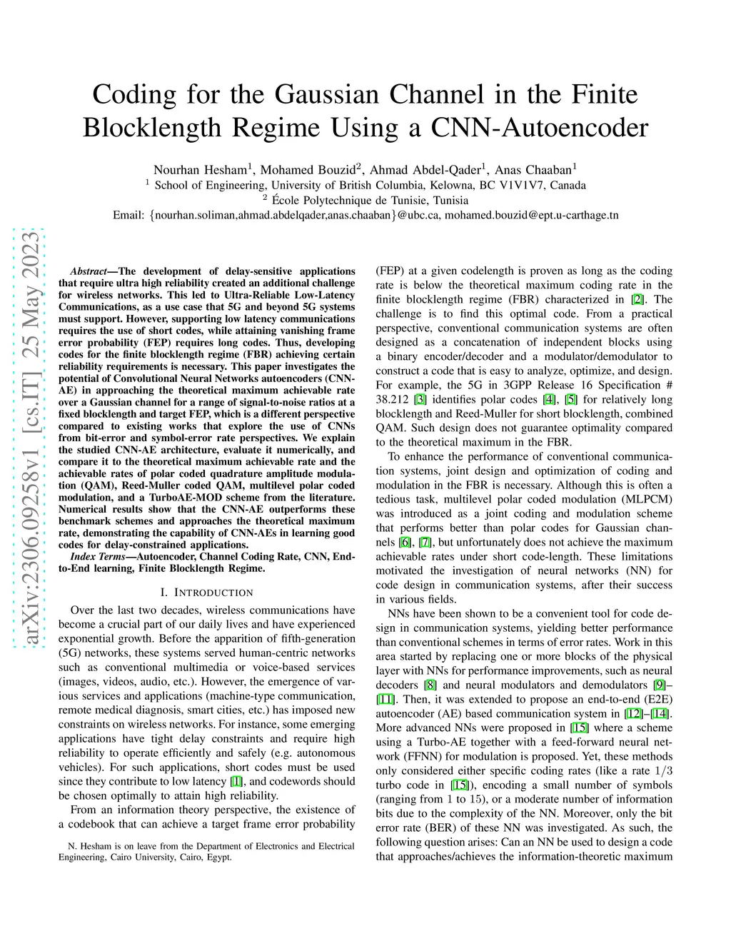 The development of delay-sensitive applications that require ultra high reliability created an additional challenge for wireless networks. This led to Ultra-Reliable Low-Latency Communications, as a use case that 5G and beyond 5G systems must support. However, supporting low latency communications requires the use of short codes, while attaining vanishing frame error probability (FEP) requires long codes. Thus, developing codes for the finite blocklength regime (FBR) achieving certain reliability requirements is necessary. This paper investigates the potential of Convolutional Neural Networks autoencoders (CNN-AE) in approaching the theoretical maximum achievable rate over a Gaussian channel for a range of signal-to-noise ratios at a fixed blocklength and target FEP, which is a different perspective compared to existing works that explore the use of CNNs from bit-error and symbol-error rate perspectives. We explain the studied CNN-AE architecture, evaluate it numerically, and compare it to the theoretical maximum achievable rate and the achievable rates of polar coded quadrature amplitude modulation (QAM), Reed-Muller coded QAM, multilevel polar coded modulation, and a TurboAE-MOD scheme from the literature. Numerical results show that the CNN-AE outperforms these benchmark schemes and approaches the theoretical maximum rate, demonstrating the capability of CNN-AEs in learning good codes for delay-constrained applications.