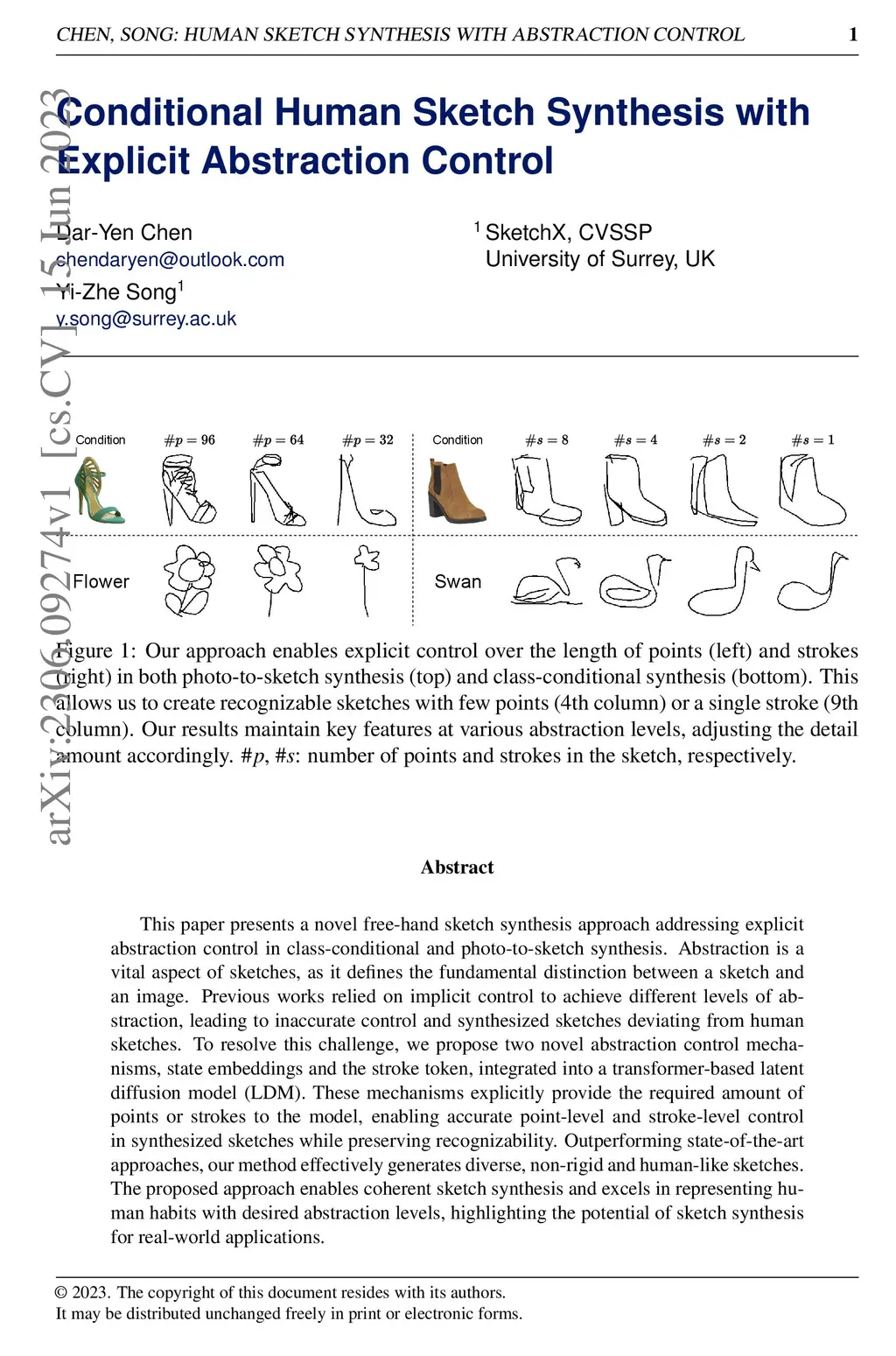 Conditional Human Sketch Synthesis with Explicit Abstraction Control