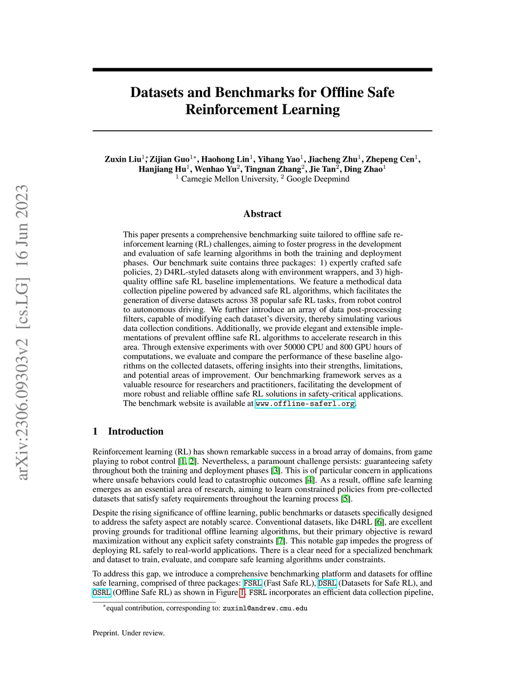 Datasets and Benchmarks for Offline Safe Reinforcement Learning