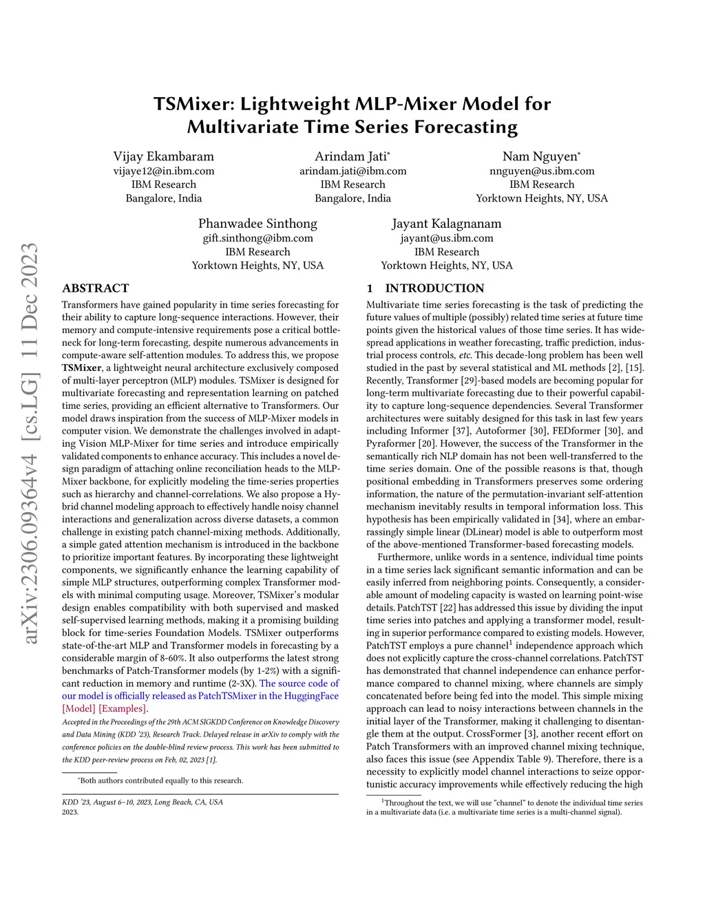 TSMixer: Lightweight MLP-Mixer Model for Multivariate Time Series