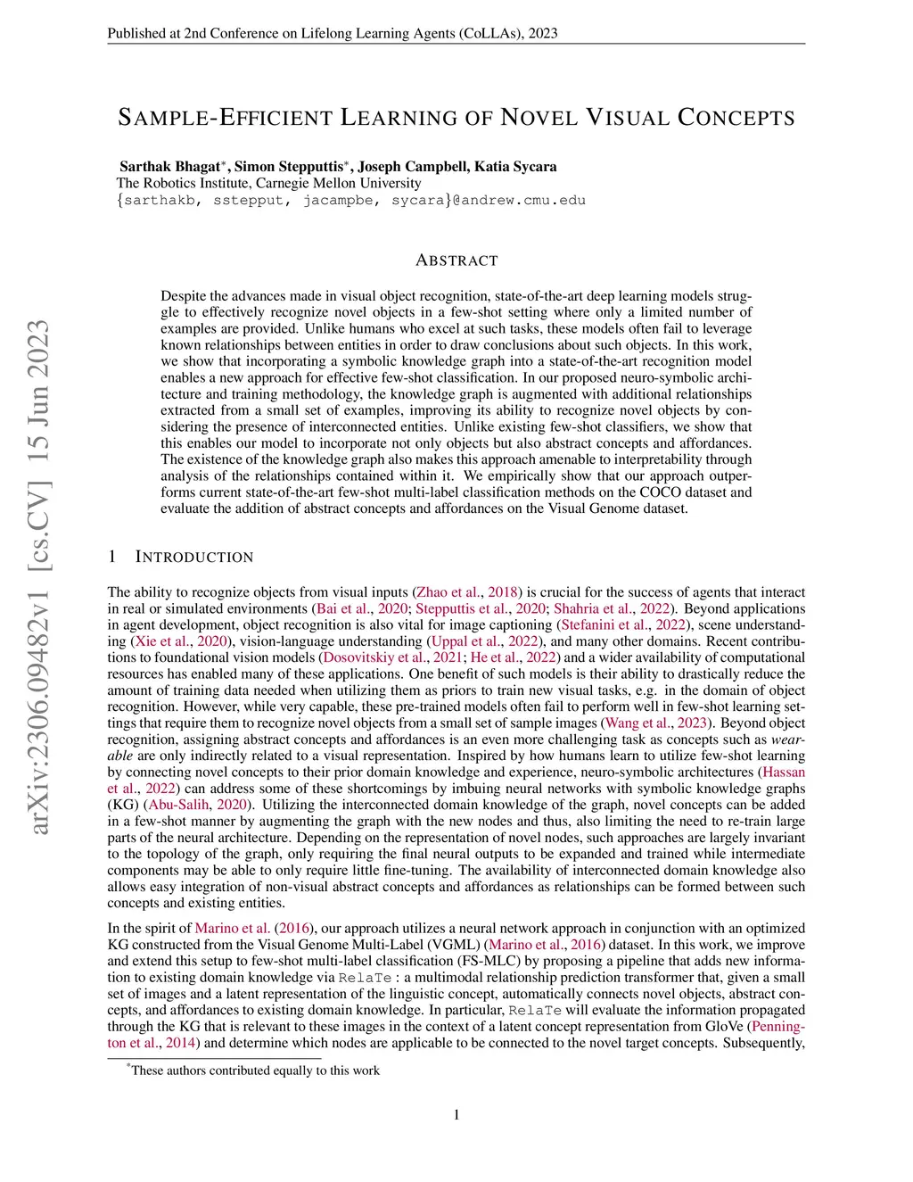 Sample-Efficient Learning of Novel Visual Concepts