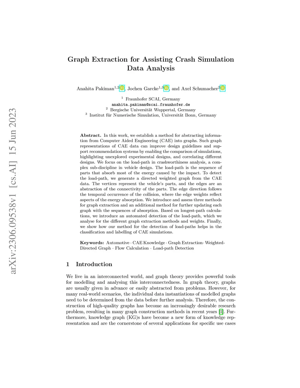 In this work, we establish a method for abstracting information from Computer Aided Engineering (CAE) into graphs. Such graph representations of CAE data can improve design guidelines and support recommendation systems by enabling the comparison of simulations, highlighting unexplored experimental designs, and correlating different designs. We focus on the load-path in crashworthiness analysis, a complex sub-discipline in vehicle design. The load-path is the sequence of parts that absorb most of the energy caused by the impact. To detect the load-path, we generate a directed weighted graph from the CAE data. The vertices represent the vehicle's parts, and the edges are an abstraction of the connectivity of the parts. The edge direction follows the temporal occurrence of the collision, where the edge weights reflect aspects of the energy absorption. We introduce and assess three methods for graph extraction and an additional method for further updating each graph with the sequences of absorption. Based on longest-path calculations, we introduce an automated detection of the load-path, which we analyse for the different graph extraction methods and weights. Finally, we show how our method for the detection of load-paths helps in the classification and labelling of CAE simulations.