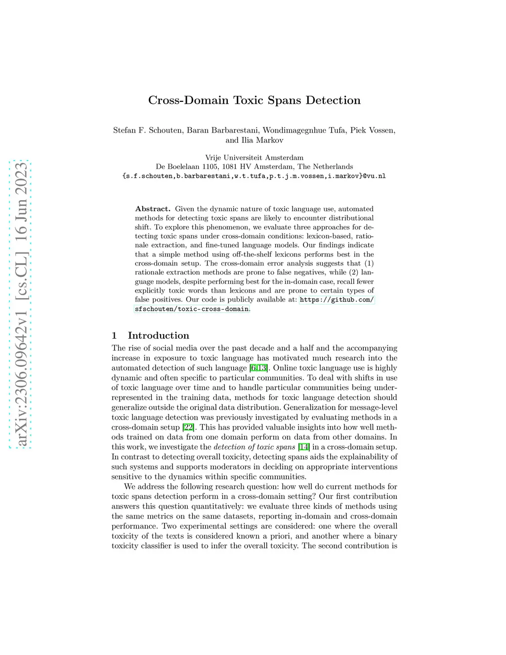Cross-Domain Toxic Spans Detection