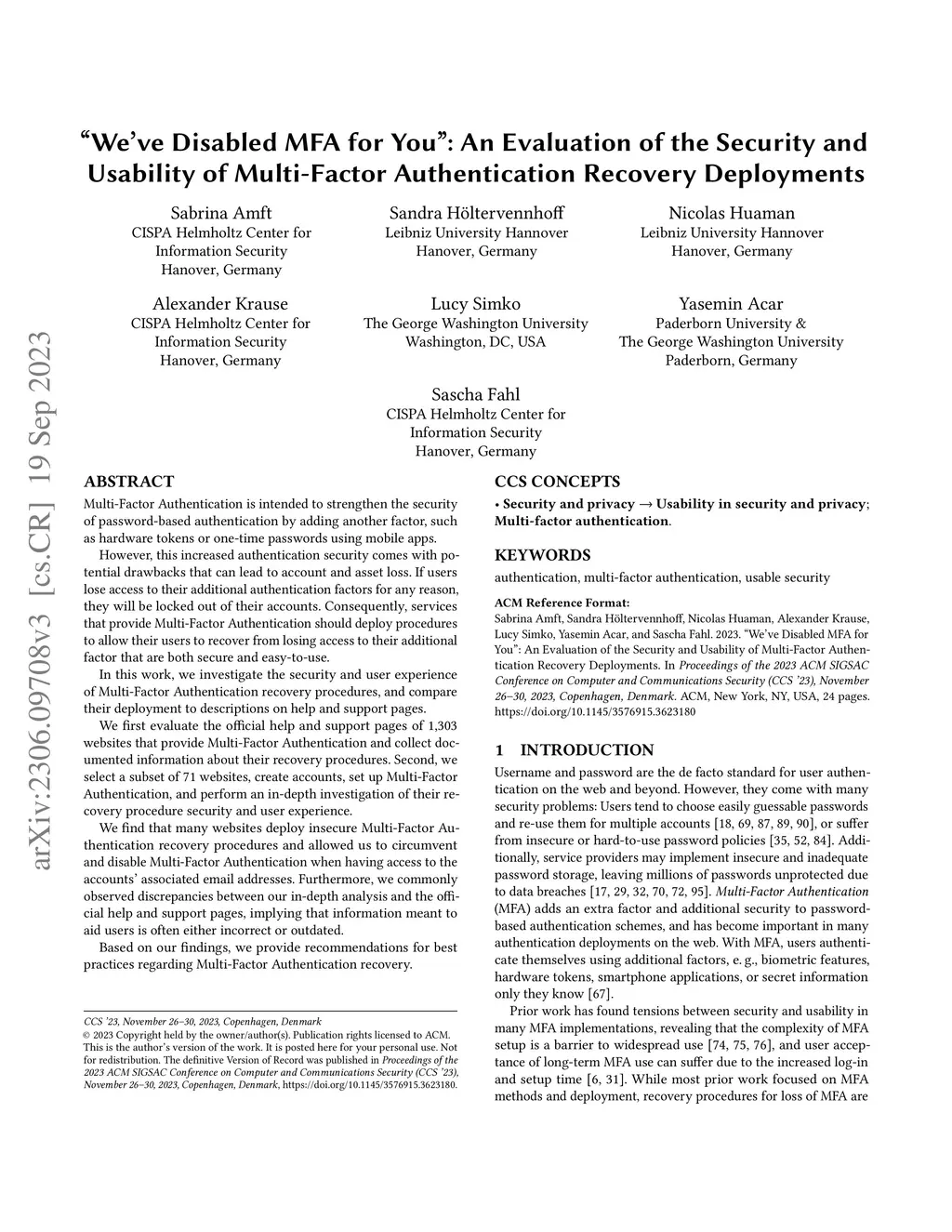 "We've Disabled MFA for You": An Evaluation of the Security and