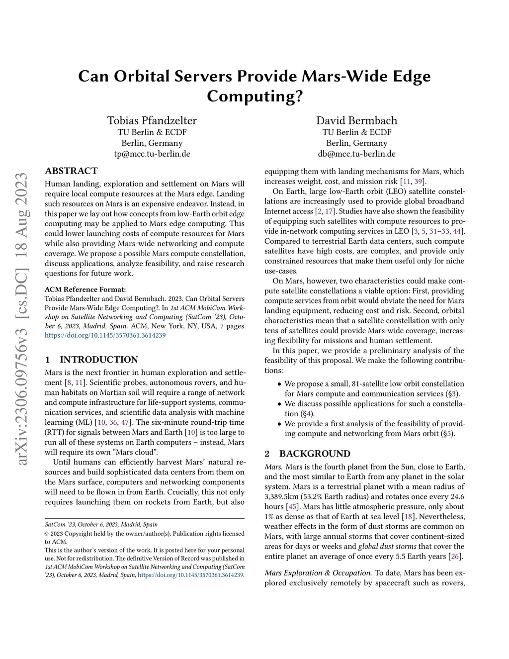 Can Orbital Servers Provide Mars-Wide Edge Computing?