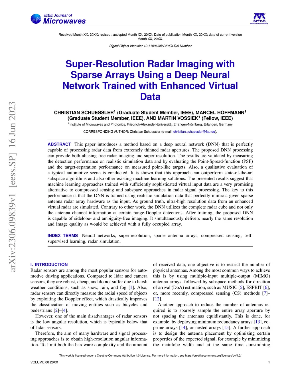 This paper introduces a method based on a deep neural network (DNN) that is perfectly capable of processing radar data from extremely thinned radar apertures. The proposed DNN processing can provide both aliasing-free radar imaging and super-resolution. The results are validated by measuring the detection performance on realistic simulation data and by evaluating the Point-Spread-function (PSF) and the target-separation performance on measured point-like targets. Also, a qualitative evaluation of a typical automotive scene is conducted. It is shown that this approach can outperform state-of-the-art subspace algorithms and also other existing machine learning solutions. The presented results suggest that machine learning approaches trained with sufficiently sophisticated virtual input data are a very promising alternative to compressed sensing and subspace approaches in radar signal processing. The key to this performance is that the DNN is trained using realistic simulation data that perfectly mimic a given sparse antenna radar array hardware as the input. As ground truth, ultra-high resolution data from an enhanced virtual radar are simulated. Contrary to other work, the DNN utilizes the complete radar cube and not only the antenna channel information at certain range-Doppler detections. After training, the proposed DNN is capable of sidelobe- and ambiguity-free imaging. It simultaneously delivers nearly the same resolution and image quality as would be achieved with a fully occupied array.