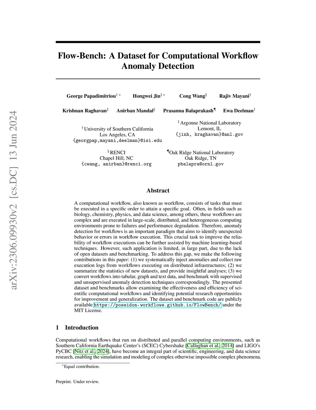 Flow-Bench: A Dataset for Computational Workflow Anomaly Detection