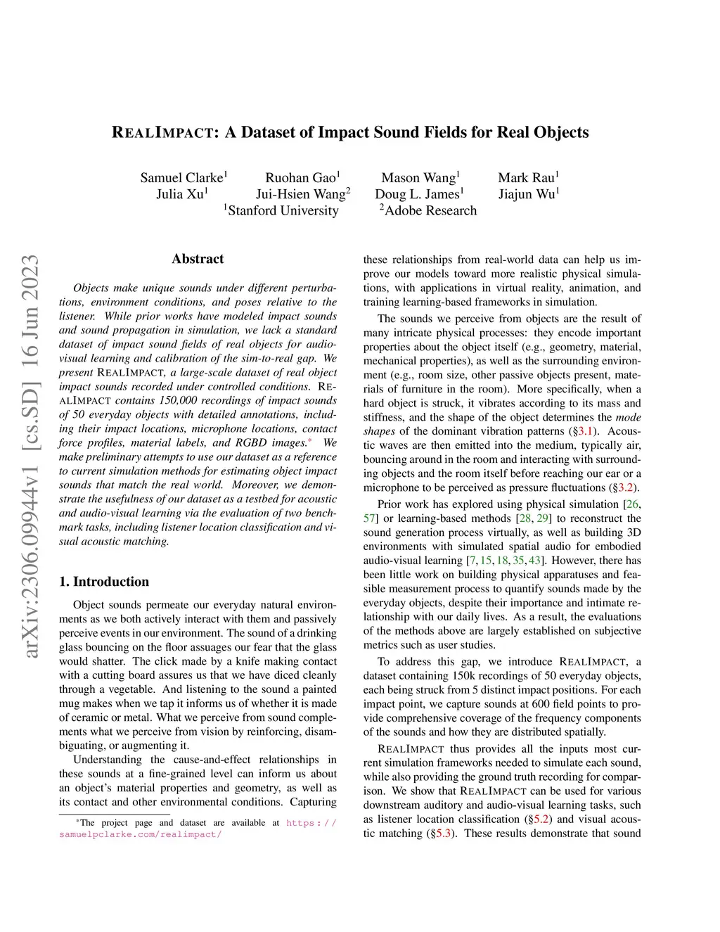 RealImpact: A Dataset of Impact Sound Fields for Real Objects