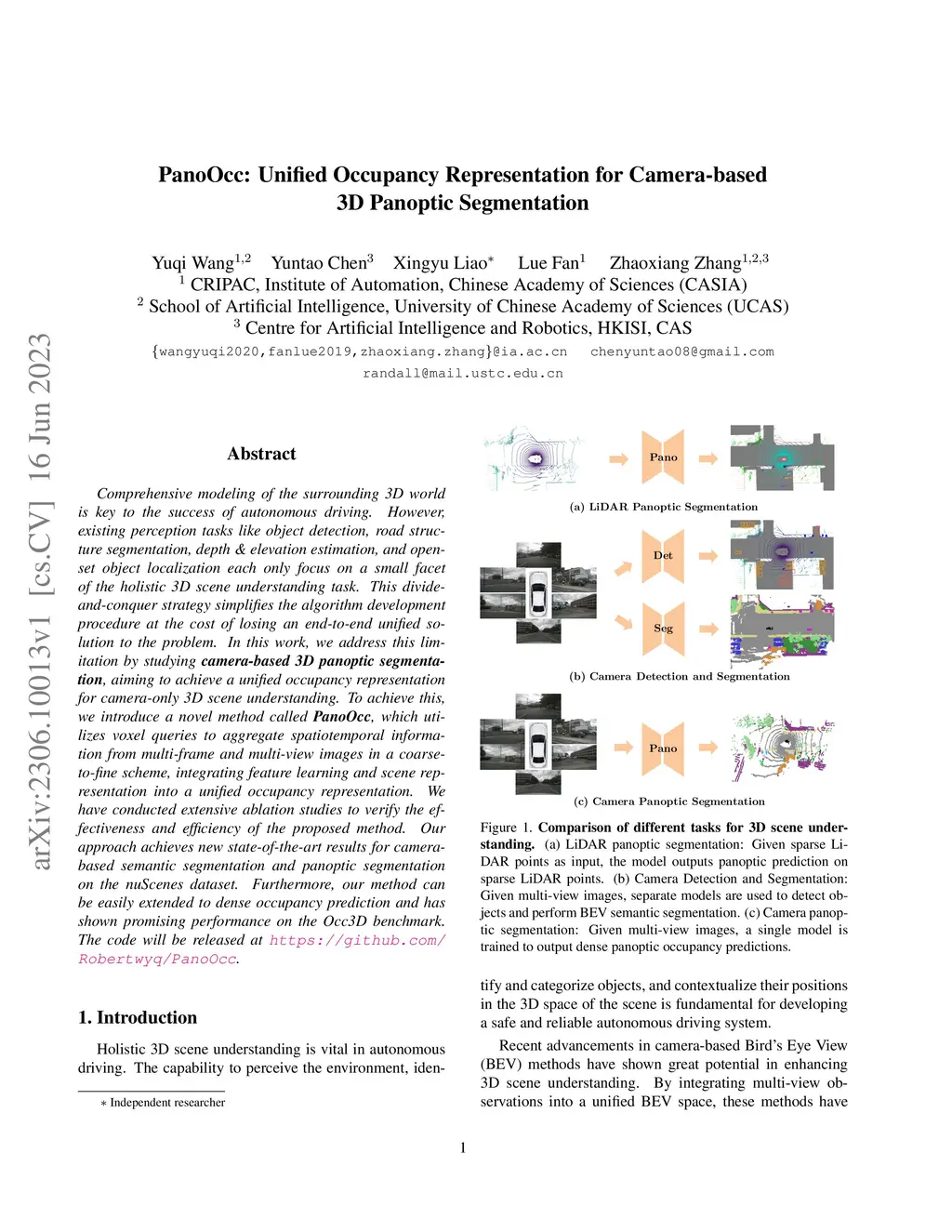 PanoOcc: Unified Occupancy Representation for Camera-based 3D Panoptic