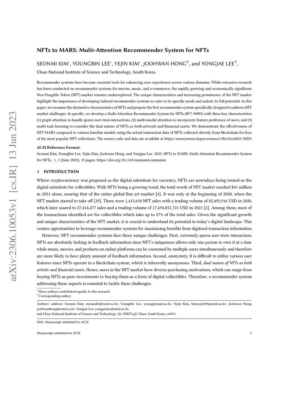 NFTs to MARS: Multi-Attention Recommender System for NFTs