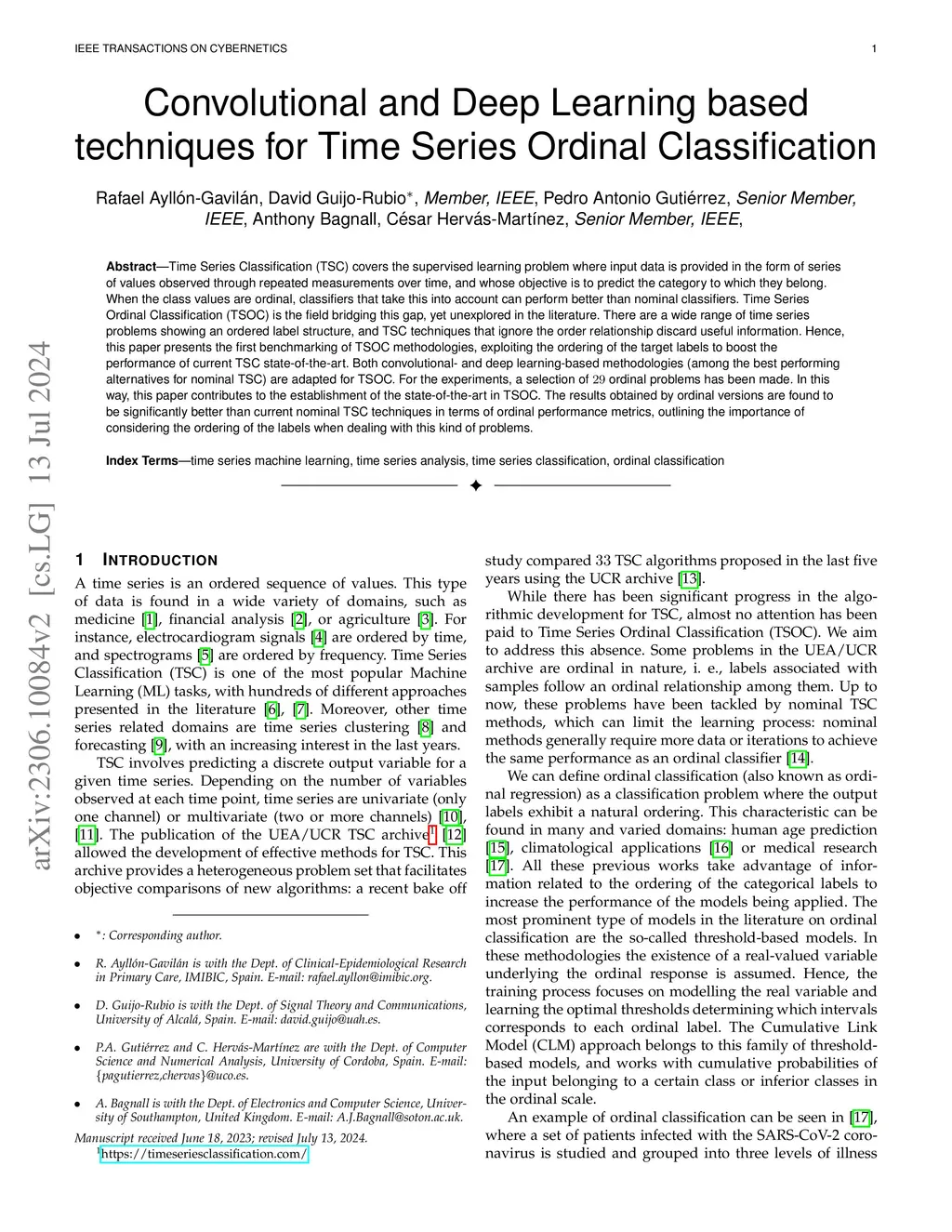 Convolutional and Deep Learning based techniques for Time Series Ordinal
