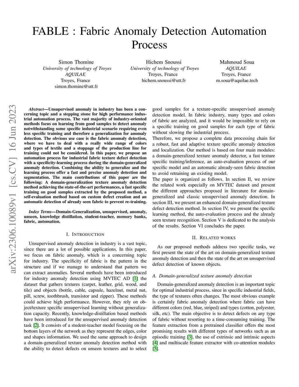 Unsupervised anomaly in industry has been a concerning topic and a stepping stone for high performance industrial automation process. The vast majority of industry-oriented methods focus on learning from good samples to detect anomaly notwithstanding some specific industrial scenario requiring even less specific training and therefore a generalization for anomaly detection. The obvious use case is the fabric anomaly detection, where we have to deal with a really wide range of colors and types of textile and a stoppage of the production line for training could not be considered. In this paper, we propose an automation process for industrial fabric texture defect detection with a specificity-learning process during the domain-generalized anomaly detection. Combining the ability to generalize and the learning process offer a fast and precise anomaly detection and segmentation. The main contributions of this paper are the following: A domain-generalization texture anomaly detection method achieving the state-of-the-art performances, a fast specific training on good samples extracted by the proposed method, a self-evaluation method based on custom defect creation and an automatic detection of already seen fabric to prevent re-training.