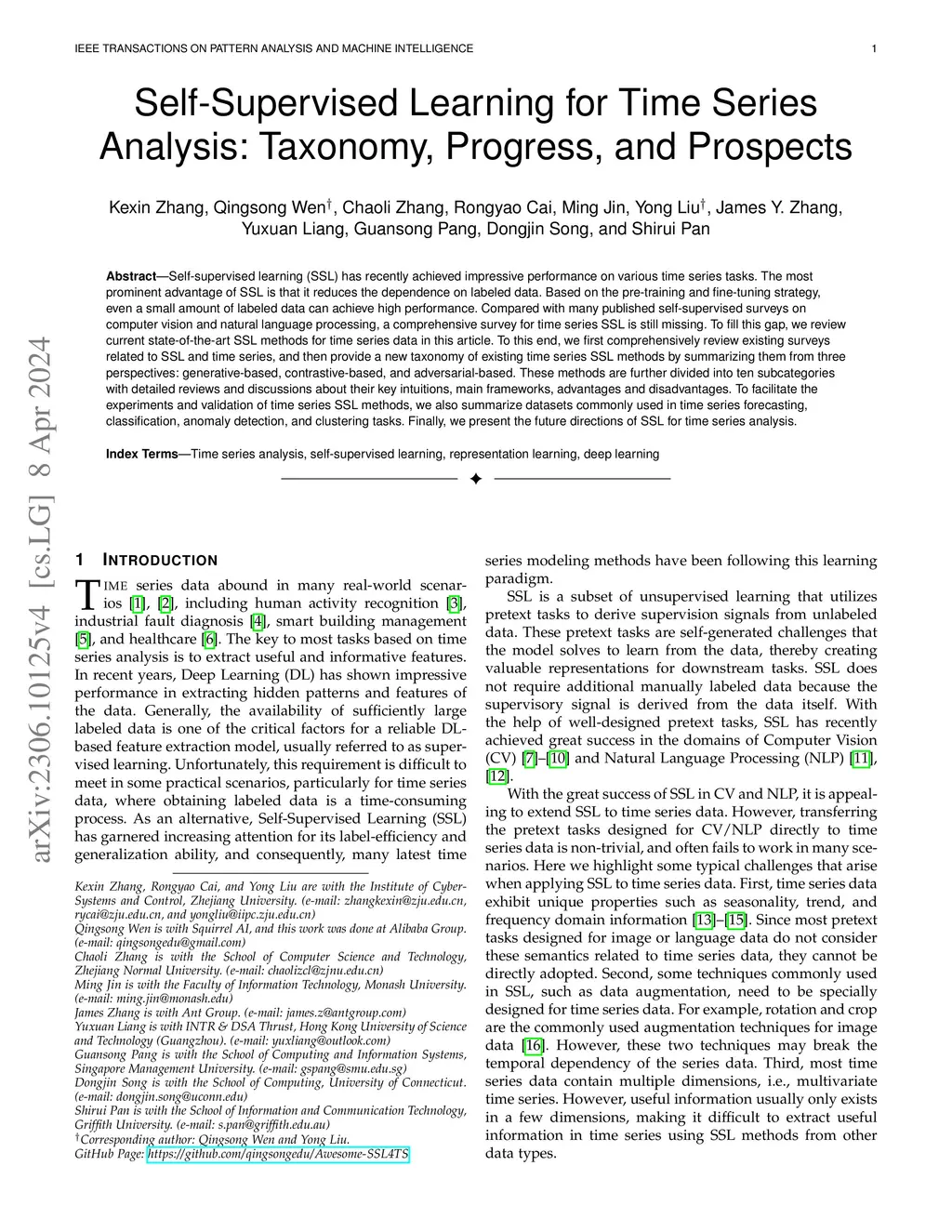 Self-Supervised Learning for Time Series Analysis: Taxonomy, Progress,