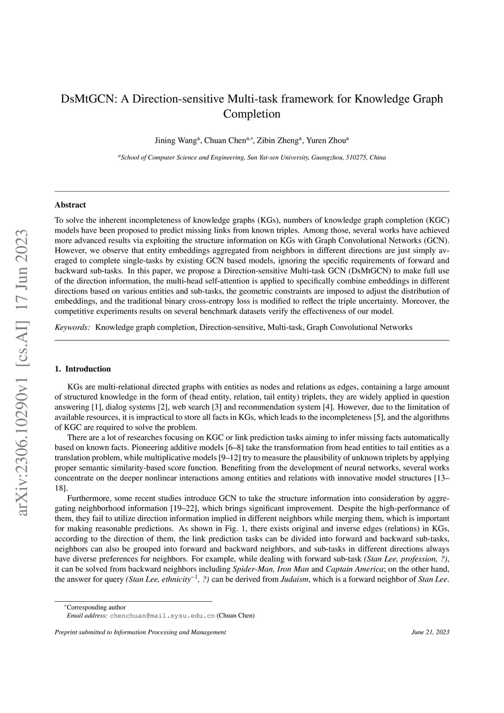 DsMtGCN: A Direction-sensitive Multi-task framework for Knowledge Graph