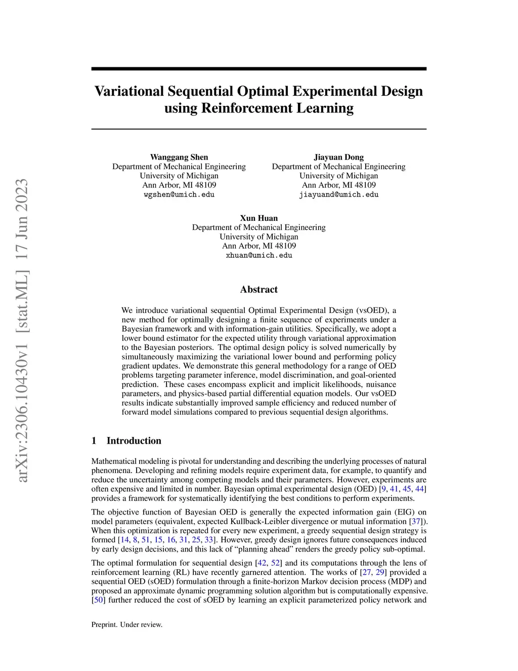 Variational Sequential Optimal Experimental Design using Reinforcement