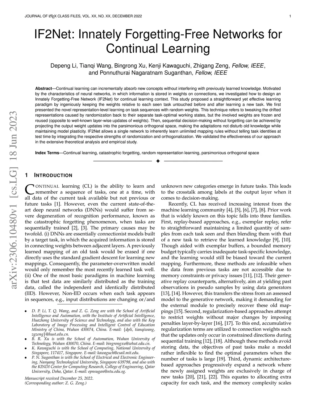 IF2Net: Innately Forgetting-Free Networks for Continual Learning