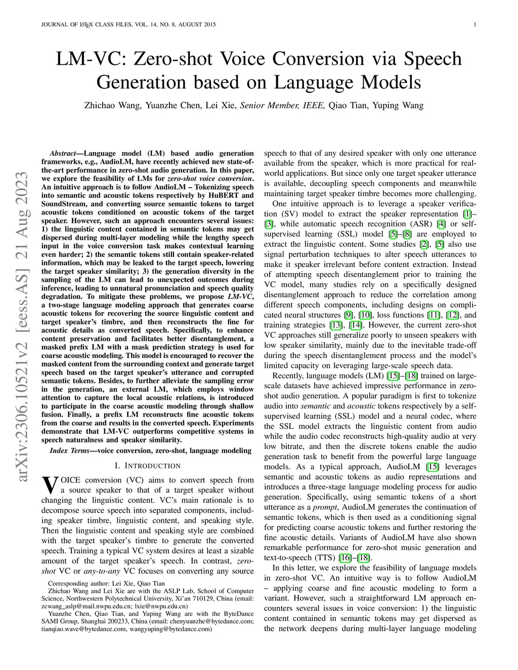 LM-VC: Zero-shot Voice Conversion via Speech Generation based on