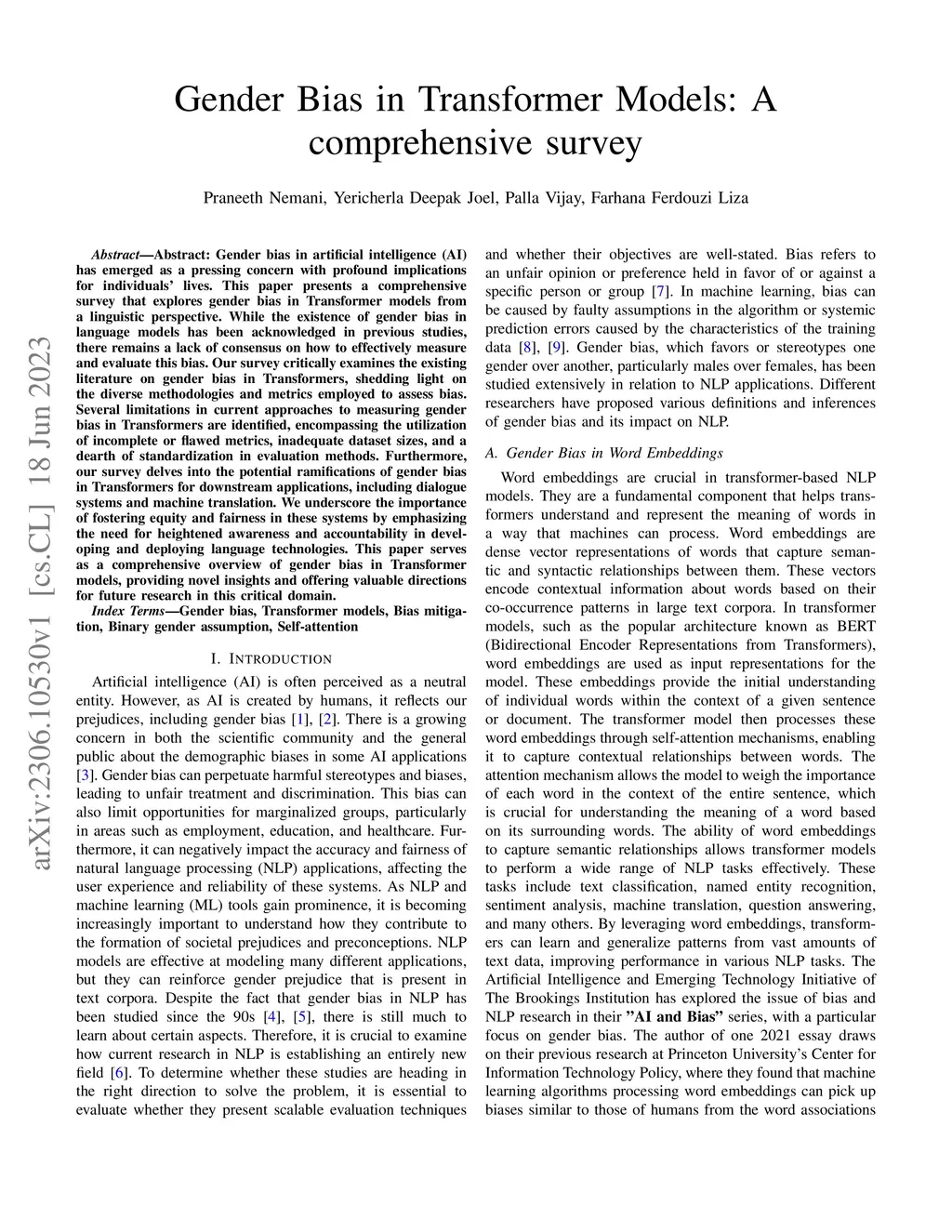 Gender Bias in Transformer Models: A comprehensive survey