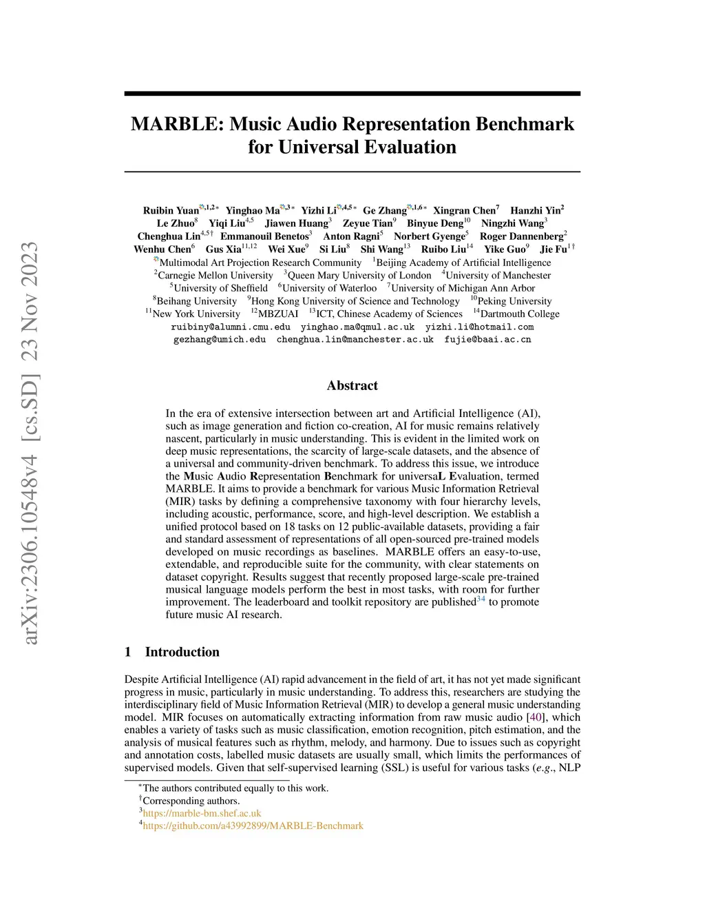 MARBLE: Music Audio Representation Benchmark for Universal Evaluation