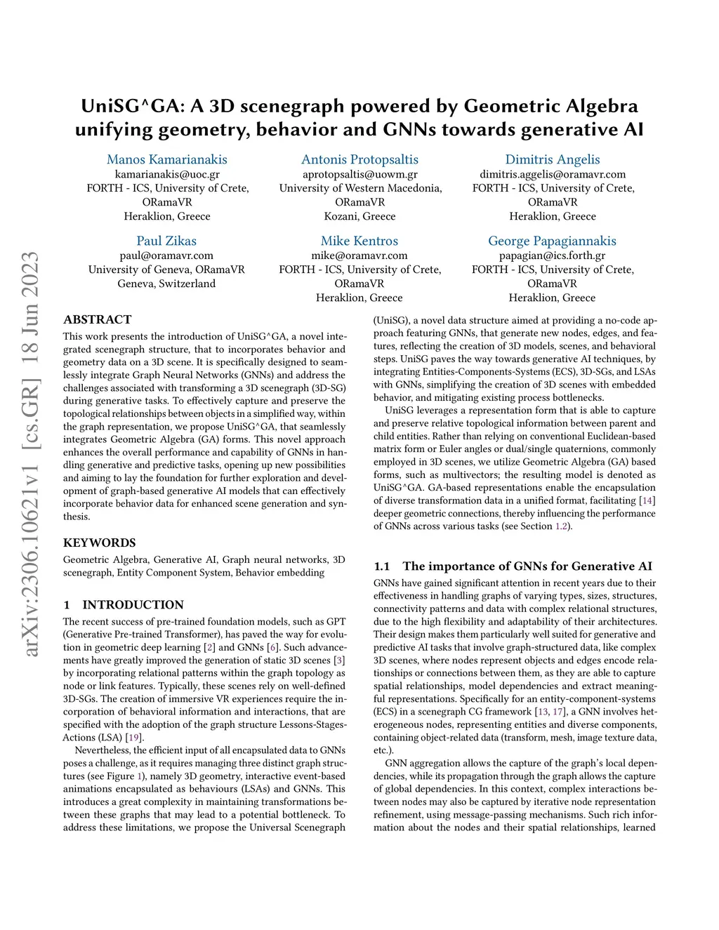 UniSG^GA: A 3D scenegraph powered by Geometric Algebra unifying