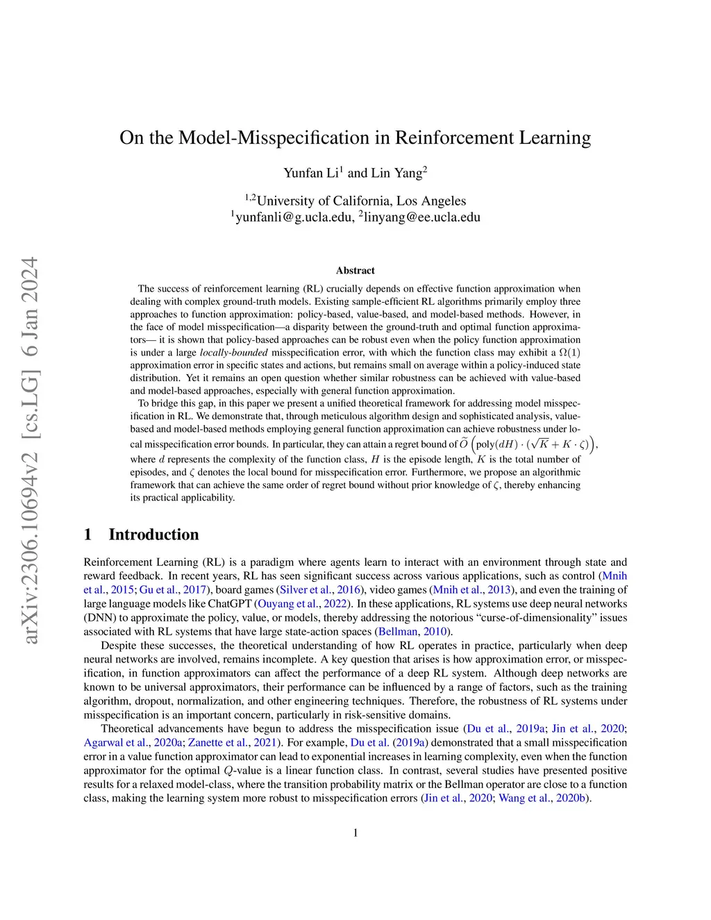 On the Model-Misspecification in Reinforcement Learning