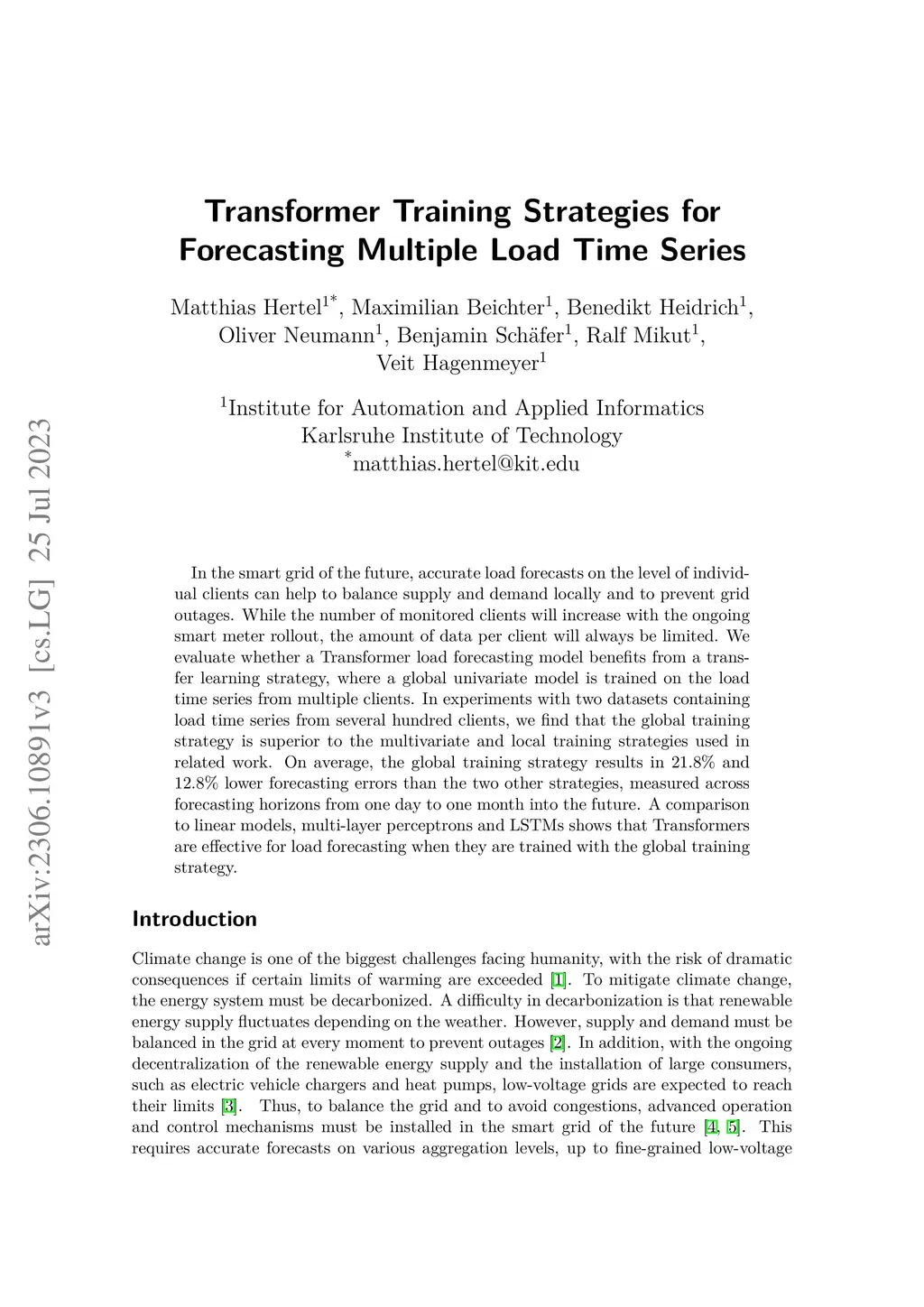 Transformer Training Strategies for Forecasting Multiple Load Time