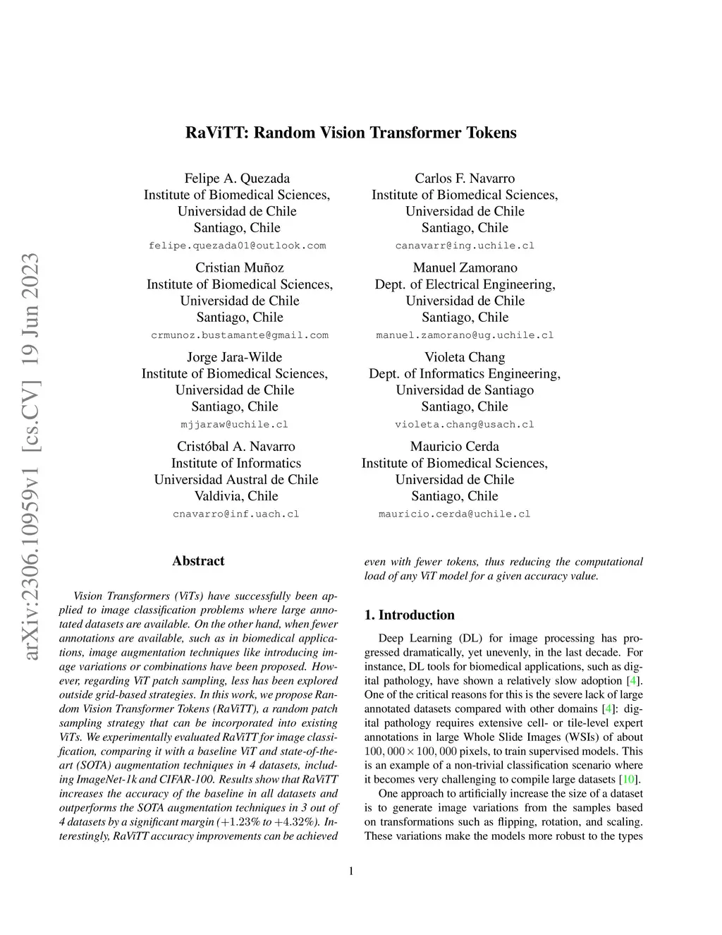 Vision Transformers (ViTs) have successfully been applied to image classification problems where large annotated datasets are available. On the other hand, when fewer annotations are available, such as in biomedical applications, image augmentation techniques like introducing image variations or combinations have been proposed. However, regarding ViT patch sampling, less has been explored outside grid-based strategies. In this work, we propose Random Vision Transformer Tokens (RaViTT), a random patch sampling strategy that can be incorporated into existing ViTs. We experimentally evaluated RaViTT for image classification, comparing it with a baseline ViT and state-of-the-art (SOTA) augmentation techniques in 4 datasets, including ImageNet-1k and CIFAR-100. Results show that RaViTT increases the accuracy of the baseline in all datasets and outperforms the SOTA augmentation techniques in 3 out of 4 datasets by a significant margin +1.23% to +4.32%. Interestingly, RaViTT accuracy improvements can be achieved even with fewer tokens, thus reducing the computational load of any ViT model for a given accuracy value.