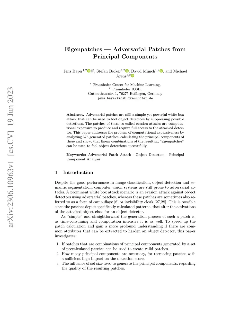 Adversarial patches are still a simple yet powerful white box attack that can be used to fool object detectors by suppressing possible detections. The patches of these so-called evasion attacks are computational expensive to produce and require full access to the attacked detector. This paper addresses the problem of computational expensiveness by analyzing 375 generated patches, calculating the principal components of these and show, that linear combinations of the resulting "eigenpatches" can be used to fool object detections successfully.