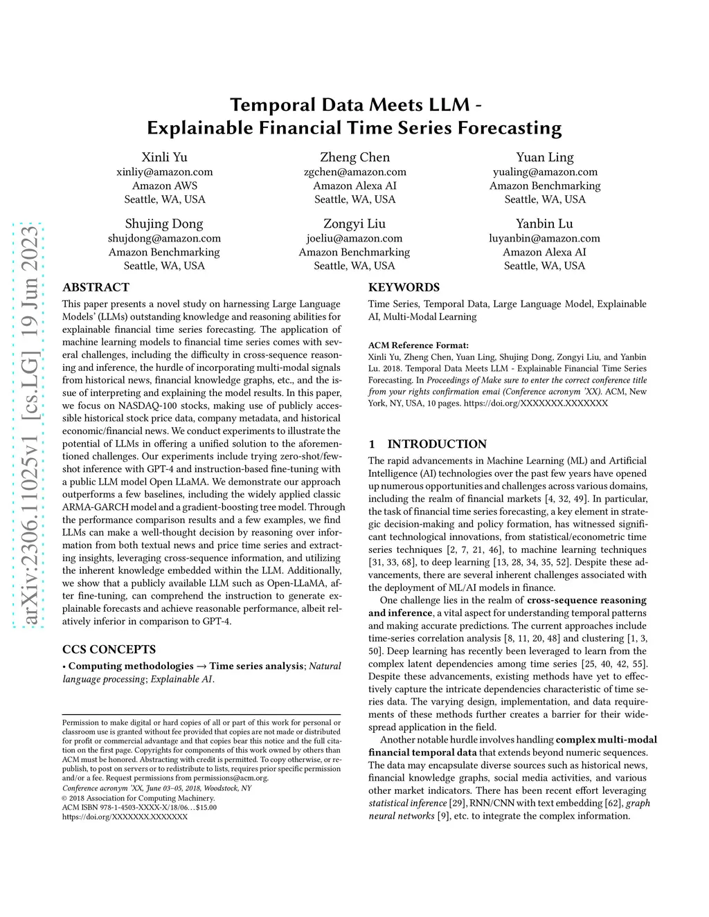 Temporal Data Meets LLM -- Explainable Financial Time Series Forecasting