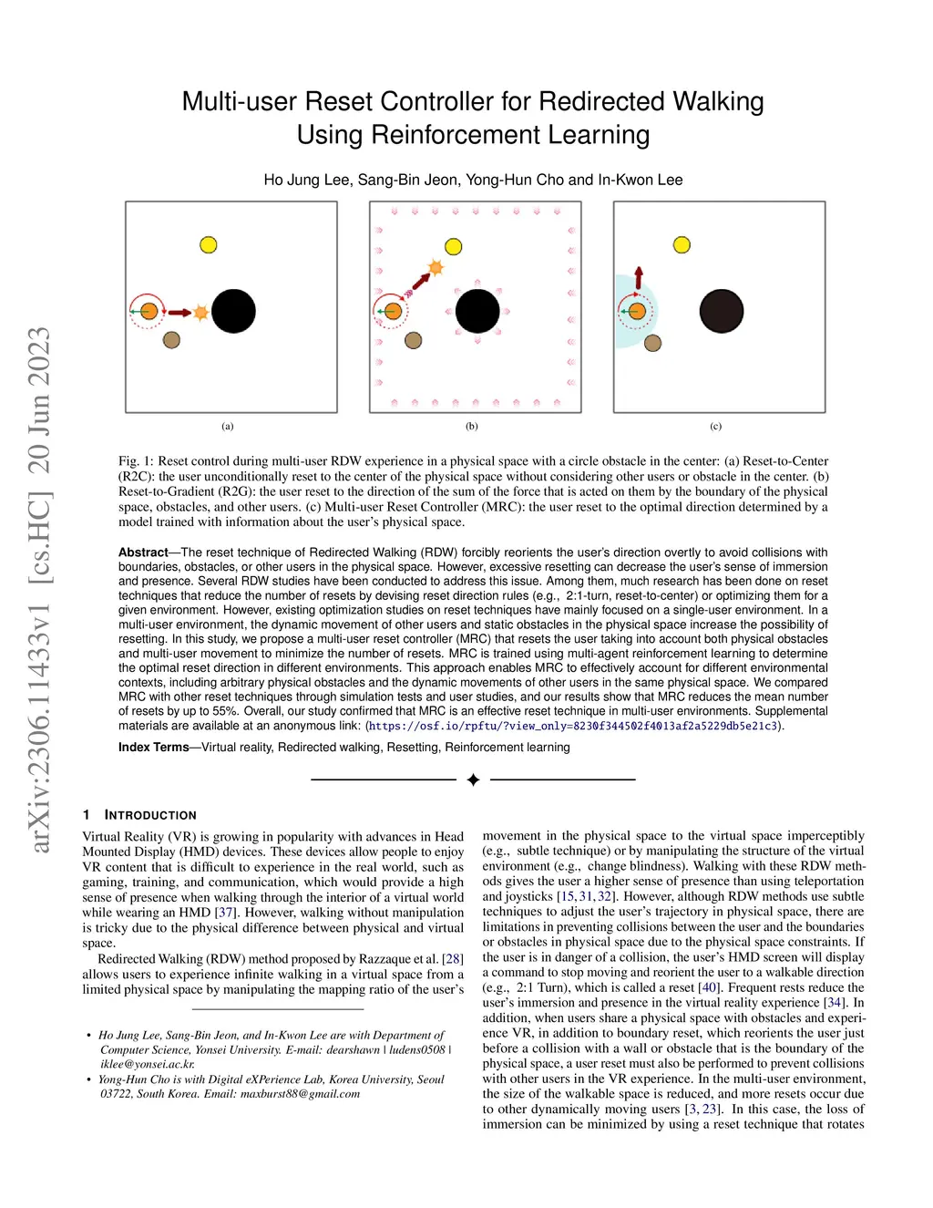 Multi-user Reset Controller for Redirected Walking Using Reinforcement