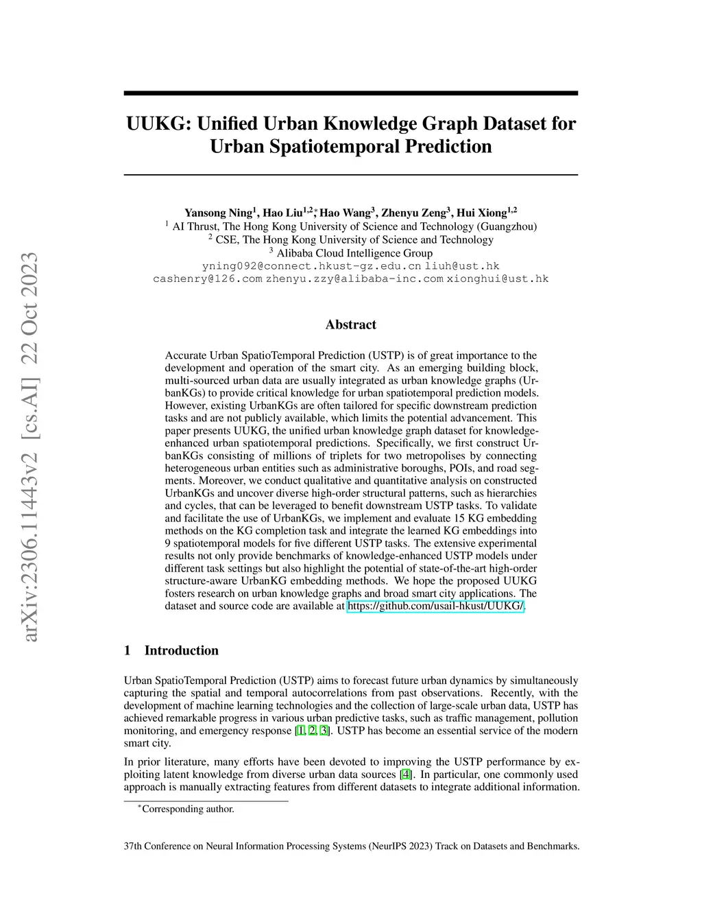 UUKG: Unified Urban Knowledge Graph Dataset for Urban Spatiotemporal