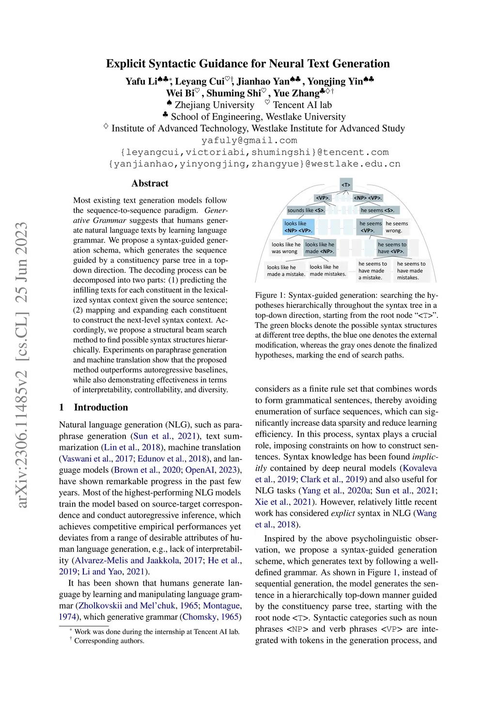 Explicit Syntactic Guidance for Neural Text Generation