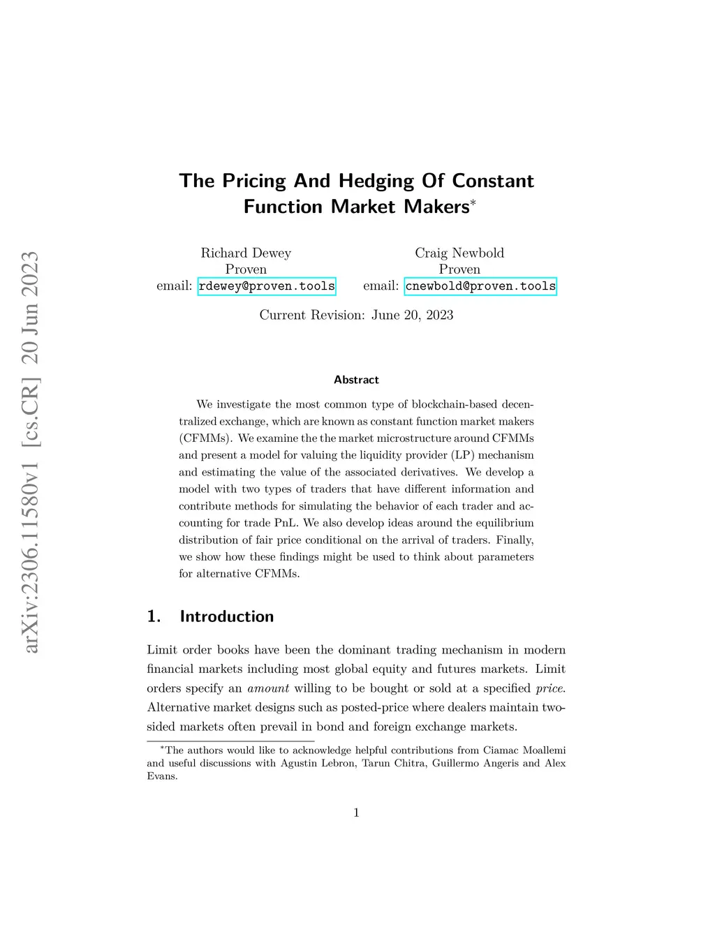 We investigate the most common type of blockchain-based decentralized exchange, which are known as constant function market makers (CFMMs). We examine the the market microstructure around CFMMs and present a model for valuing the liquidity provider (LP) mechanism and estimating the value of the associated derivatives. We develop a model with two types of traders that have different information and contribute methods for simulating the behavior of each trader and accounting for trade PnL. We also develop ideas around the equilibrium distribution of fair price conditional on the arrival of traders. Finally, we show how these findings might be used to think about parameters for alternative CFMMs.