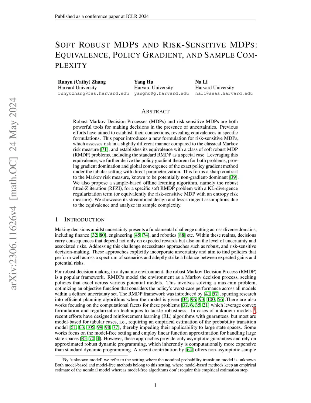 Soft Robust MDPs and Risk-Sensitive MDPs: Equivalence, Policy Gradient,