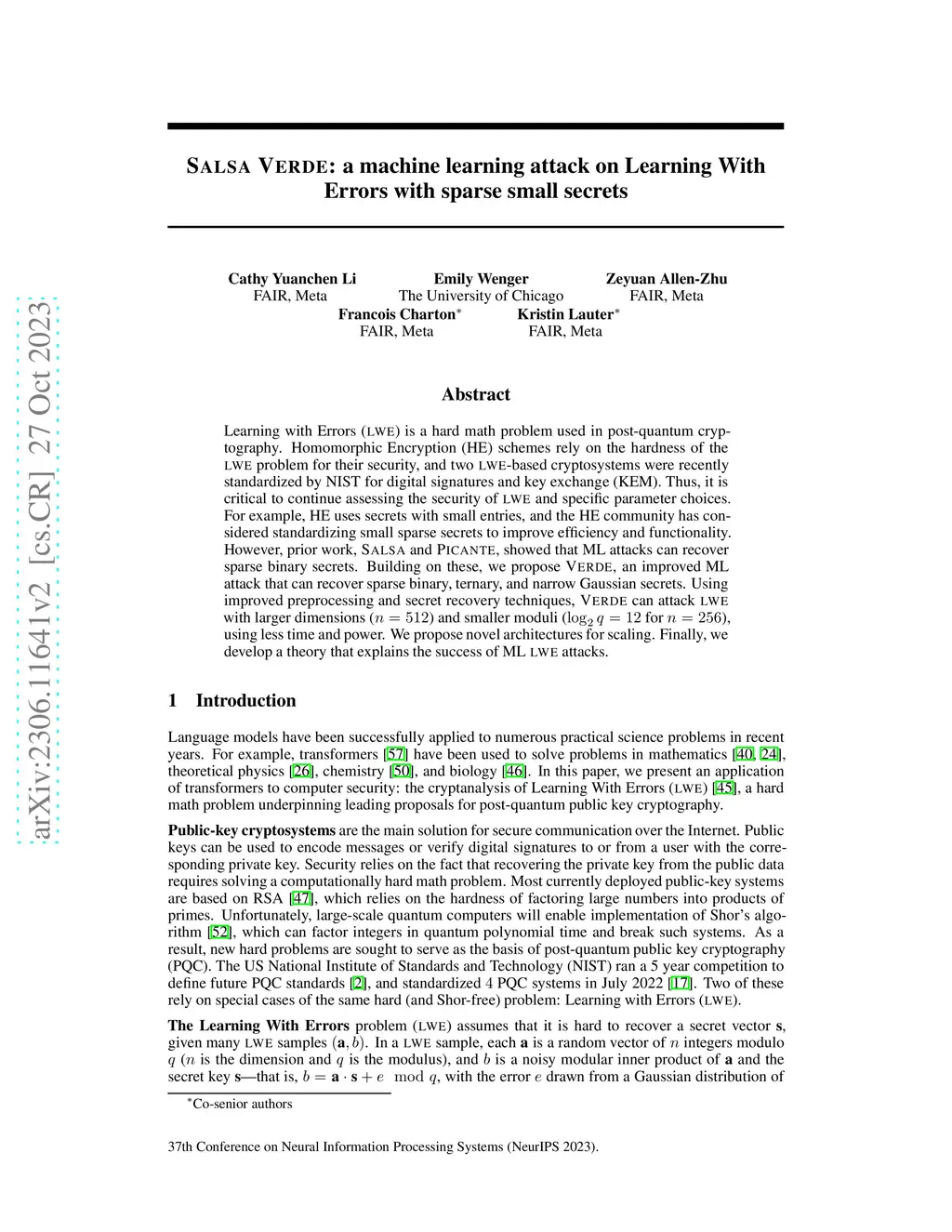 SALSA VERDE: a machine learning attack on Learning With Errors with