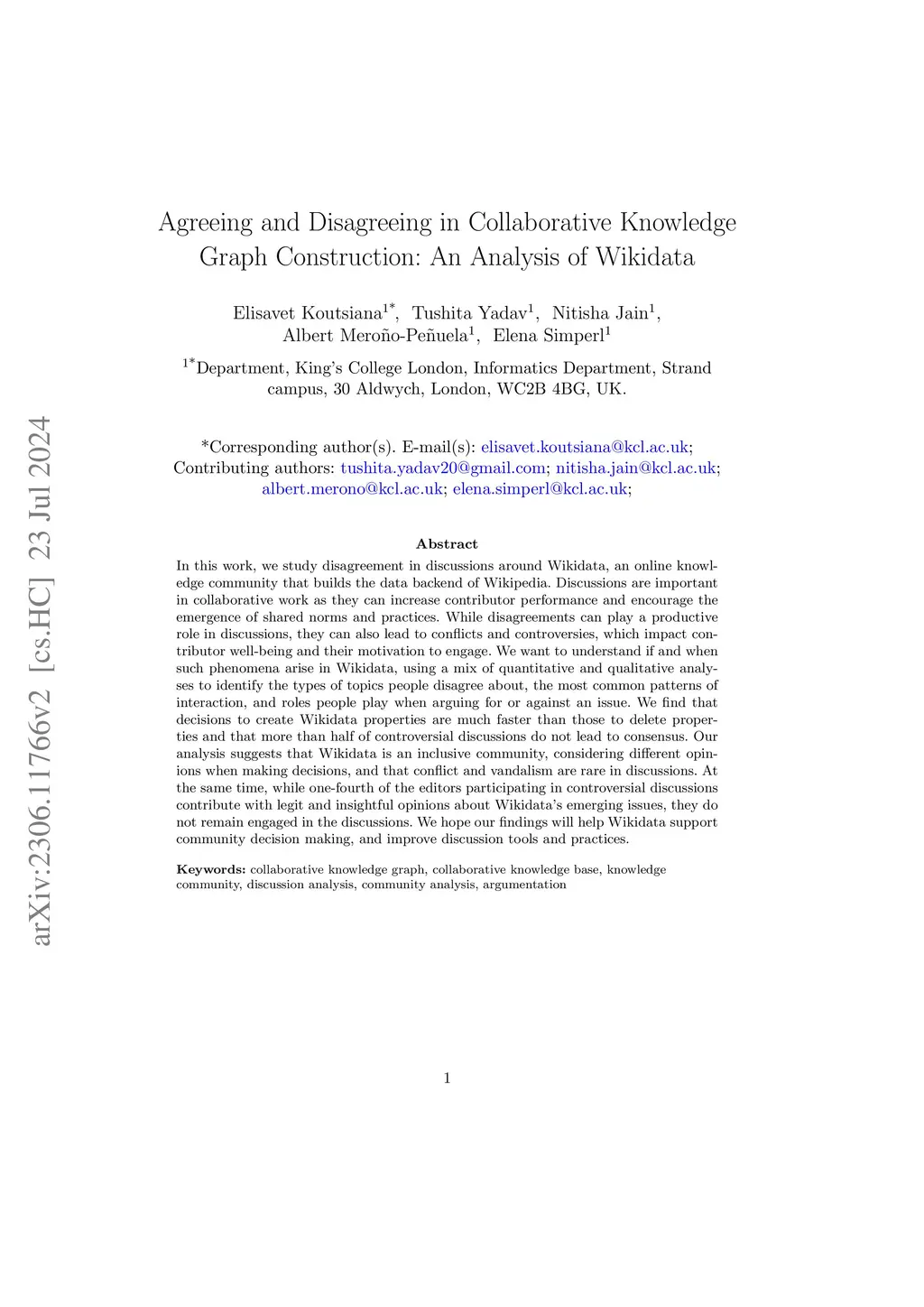 Agreeing and Disagreeing in Collaborative Knowledge Graph Construction: