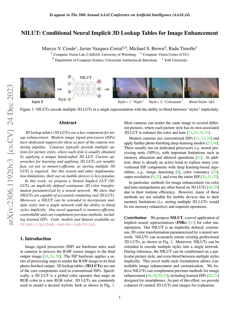 NILUT: Conditional Neural Implicit 3D Lookup Tables for Image