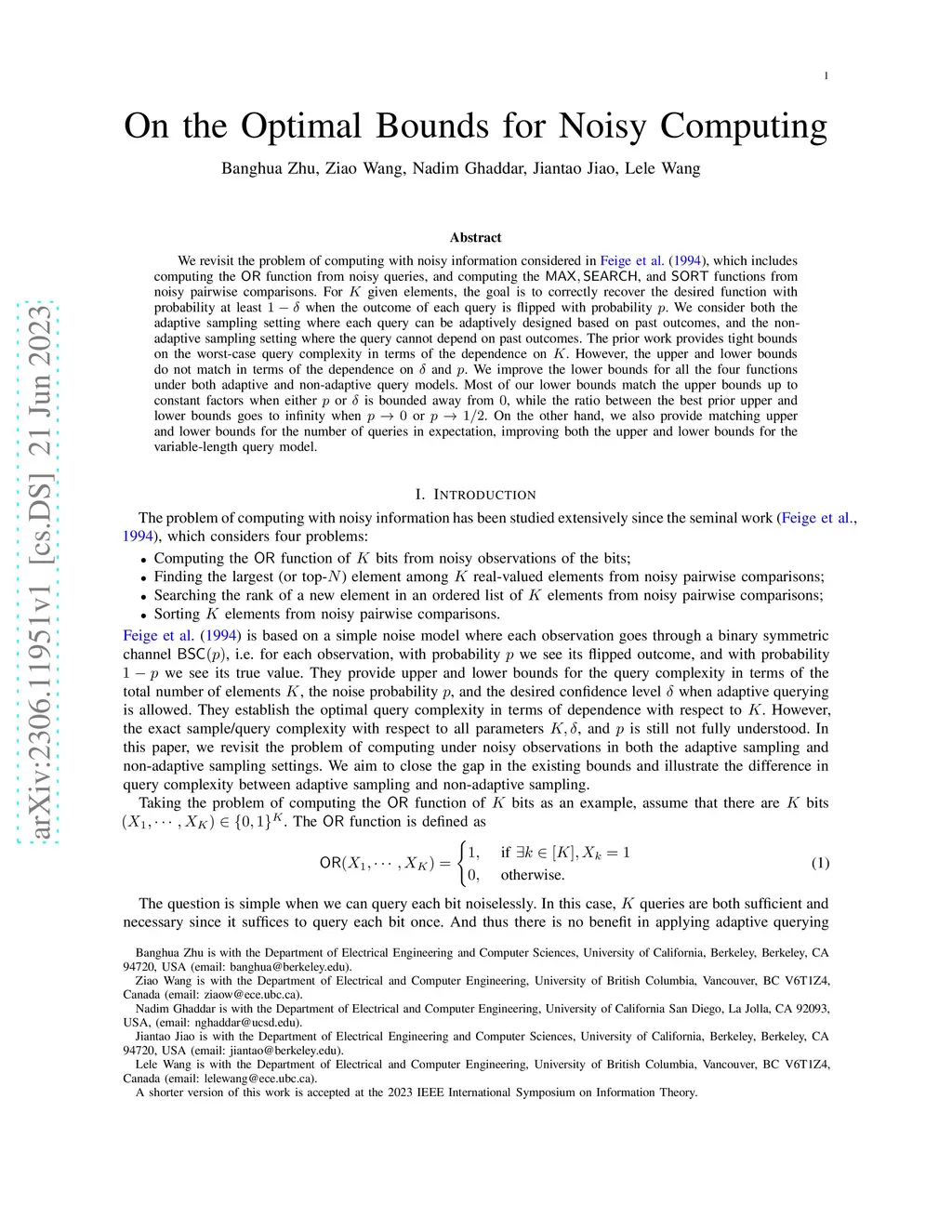 We revisit the problem of computing with noisy information considered in Feige et al. 1994, which includes computing the OR function from noisy queries, and computing the MAX, SEARCH and SORT functions from noisy pairwise comparisons. For given elements, the goal is to correctly recover the desired function with probability at least when the outcome of each query is flipped with probability . We consider both the adaptive sampling setting where each query can be adaptively designed based on past outcomes, and the non-adaptive sampling setting where the query cannot depend on past outcomes. The prior work provides tight bounds on the worst-case query complexity in terms of the dependence on . However, the upper and lower bounds do not match in terms of the dependence on and . We improve the lower bounds for all the four functions under both adaptive and non-adaptive query models. Most of our lower bounds match the upper bounds up to constant factors when either or is bounded away from , while the ratio between the best prior upper and lower bounds goes to infinity when or . On the other hand, we also provide matching upper and lower bounds for the number of queries in expectation, improving both the upper and lower bounds for the variable-length query model.