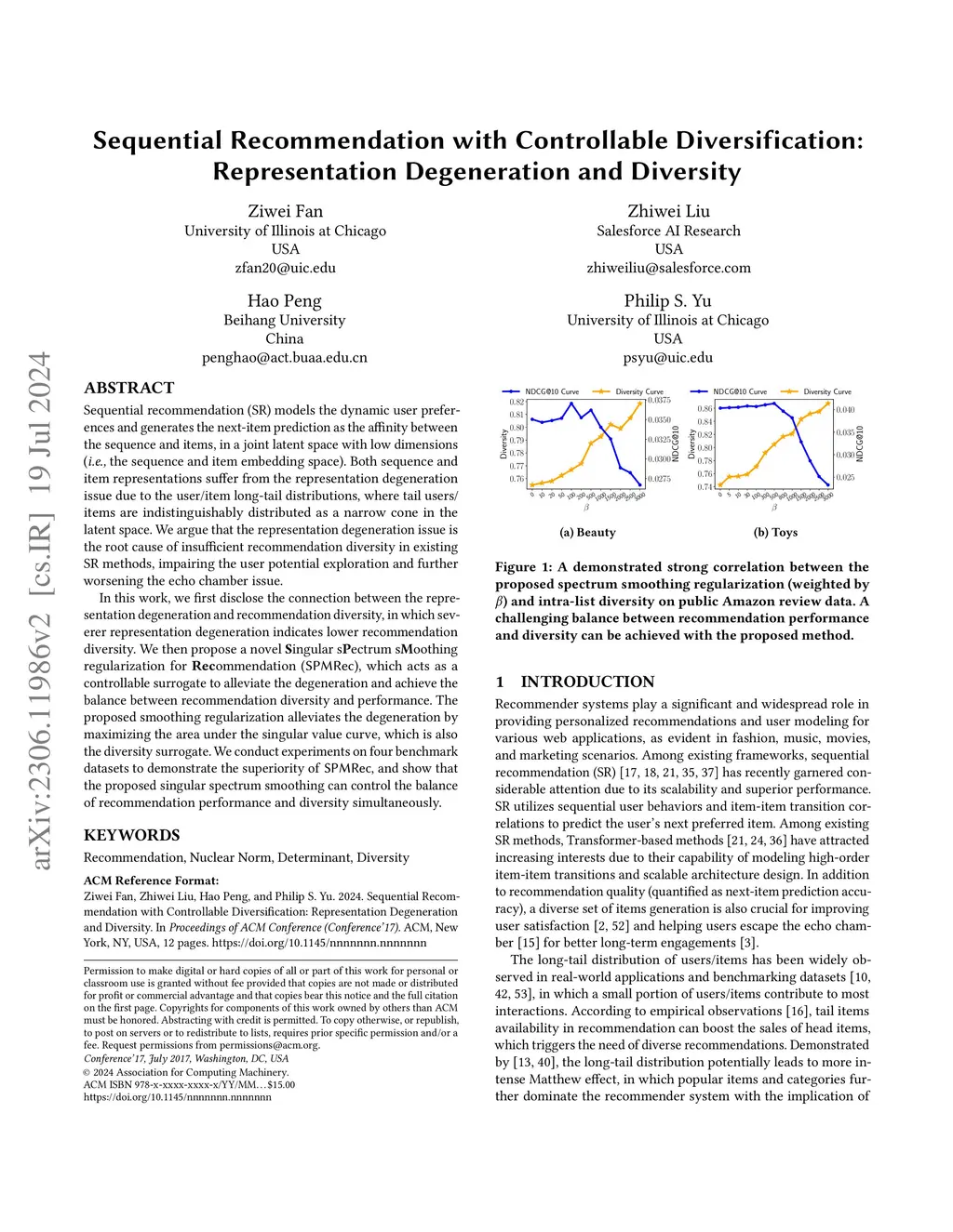 Sequential recommendation (SR) investigates the dynamic user preferences modeling and generates the next-item prediction. The next item preference is typically generated by the affinity between the sequence and item representations. However, both sequence and item representations suffer from the rank degeneration issue due to the data sparsity problem. The rank degeneration issue significantly impairs the representations for SR. This motivates us to measure how severe is the rank degeneration issue and alleviate the sequence and item representation rank degeneration issues simultaneously for SR. In this work, we theoretically connect the sequence representation degeneration issue with the item rank degeneration, particularly for short sequences and cold items. We also identify the connection between the fast singular value decay phenomenon and the rank collapse issue in transformer sequence output and item embeddings. We propose the area under the singular value curve metric to evaluate the severity of the singular value decay phenomenon and use it as an indicator of rank degeneration. We further introduce a novel singular spectrum smoothing regularization to alleviate the rank degeneration on both sequence and item sides, which is the Singular sPectrum sMoothing for sequential Recommendation (SPMRec). We also establish a correlation between the ranks of sequence and item embeddings and the rank of the user-item preference prediction matrix, which can affect recommendation diversity. We conduct experiments on four benchmark datasets to demonstrate the superiority of SPMRec over the state-of-the-art recommendation methods, especially in short sequences. The experiments also demonstrate a strong connection between our proposed singular spectrum smoothing and recommendation diversity.