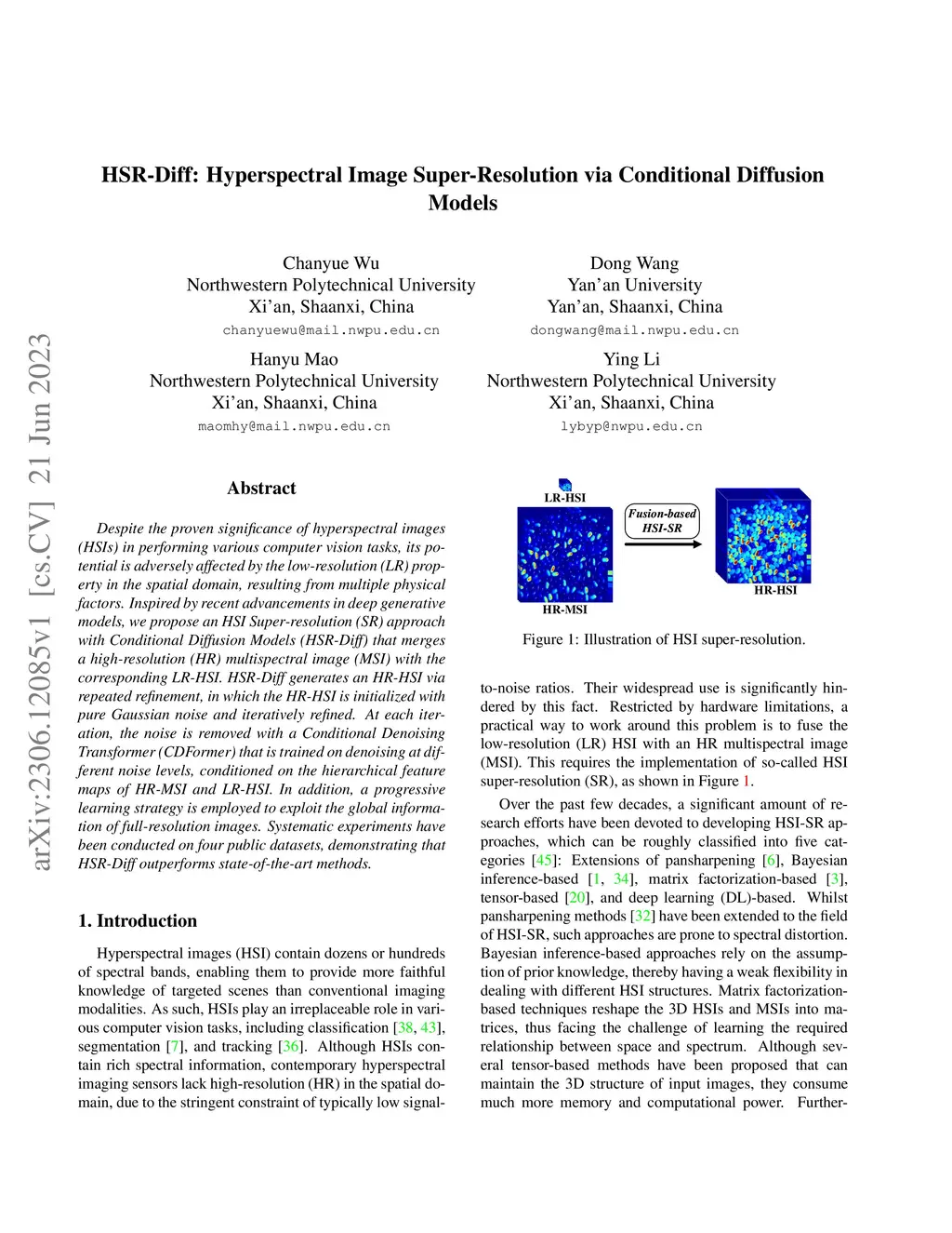 HSR-Diff:Hyperspectral Image Super-Resolution via Conditional Diffusion