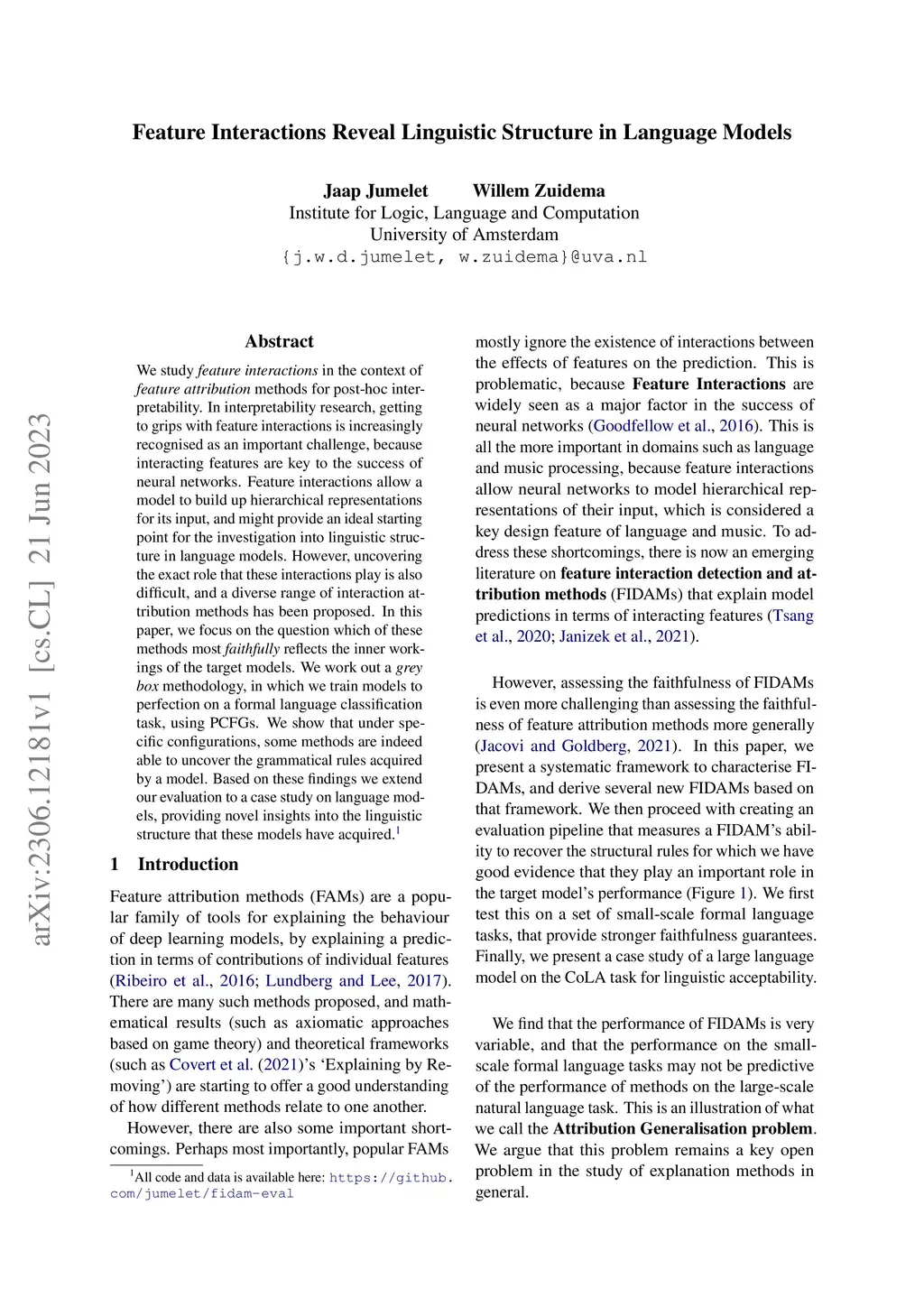 We study feature interactions in the context of feature attribution methods for post-hoc interpretability. In interpretability research, getting to grips with feature interactions is increasingly recognised as an important challenge, because interacting features are key to the success of neural networks. Feature interactions allow a model to build up hierarchical representations for its input, and might provide an ideal starting point for the investigation into linguistic structure in language models. However, uncovering the exact role that these interactions play is also difficult, and a diverse range of interaction attribution methods has been proposed. In this paper, we focus on the question which of these methods most faithfully reflects the inner workings of the target models. We work out a grey box methodology, in which we train models to perfection on a formal language classification task, using PCFGs. We show that under specific configurations, some methods are indeed able to uncover the grammatical rules acquired by a model. Based on these findings we extend our evaluation to a case study on language models, providing novel insights into the linguistic structure that these models have acquired.