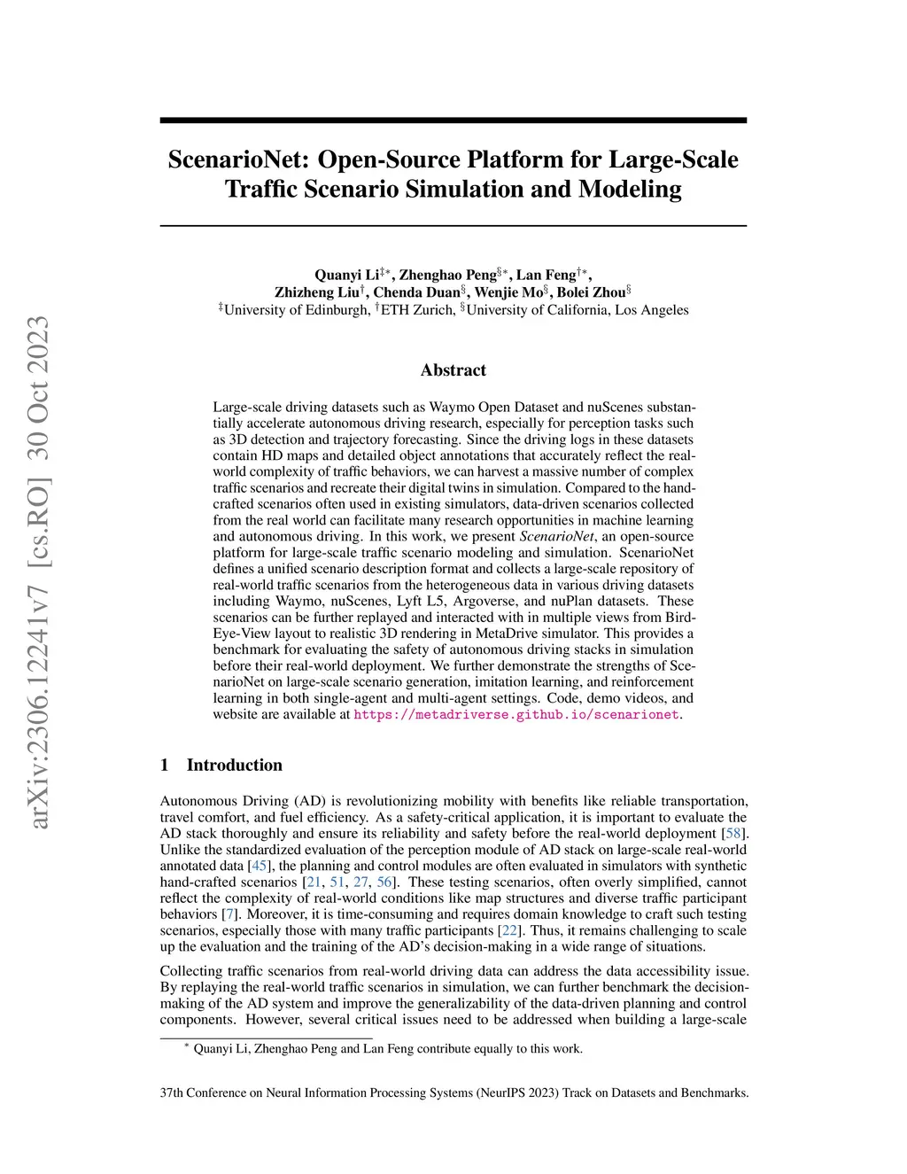ScenarioNet: Open-Source Platform for Large-Scale Traffic Scenario