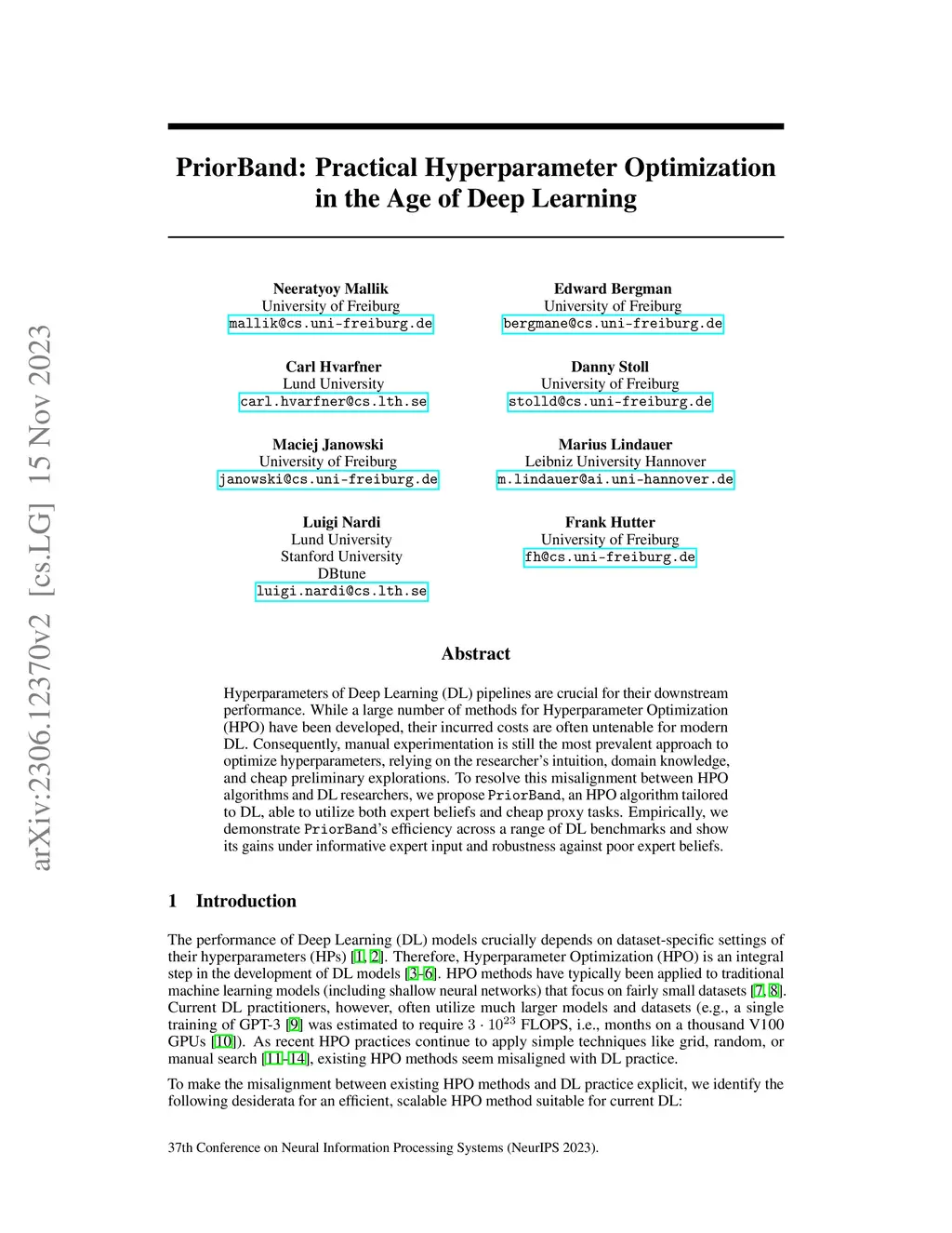 Hyperparameters of Deep Learning (DL) pipelines are crucial for their downstream performance. While a large number of methods for Hyperparameter Optimization (HPO) have been developed, their incurred costs are often untenable for modern DL. Consequently, manual experimentation is still the most prevalent approach to optimize hyperparameters, relying on the researcher's intuition, domain knowledge, and cheap preliminary explorations. To resolve this misalignment between HPO algorithms and DL researchers, we propose PriorBand, an HPO algorithm tailored to DL, able to utilize both expert beliefs and cheap proxy tasks. Empirically, we demonstrate PriorBand's efficiency across a range of DL benchmarks and show its gains under informative expert input and robustness against poor expert beliefs