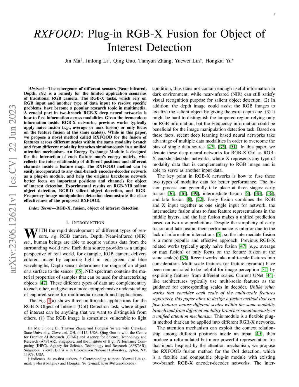 RXFOOD: Plug-in RGB-X Fusion for Object of Interest Detection