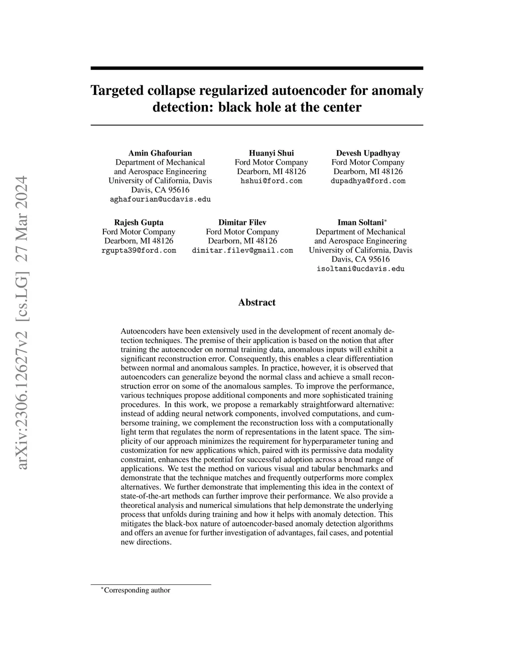 Targeted collapse regularized autoencoder for anomaly detection: black