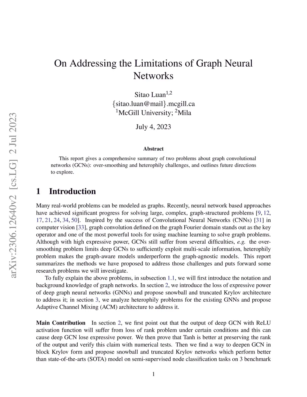 This report gives a summary of two problems about graph convolutional networks (GCNs): over-smoothing and heterophily challenges, and outlines future directions to explore.