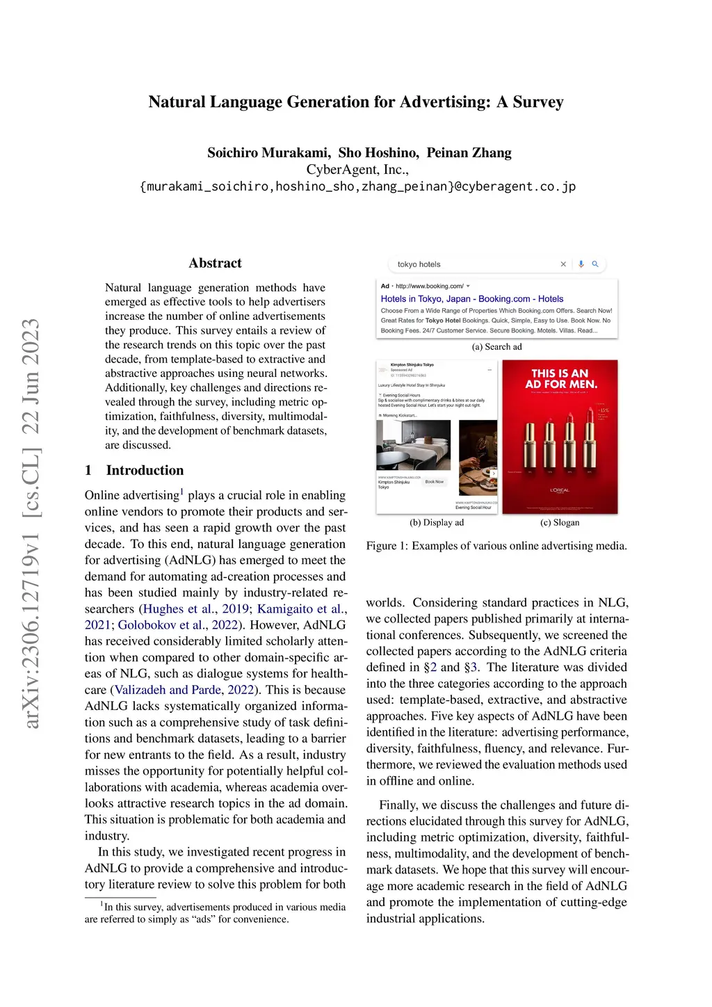Natural Language Generation for Advertising: A Survey